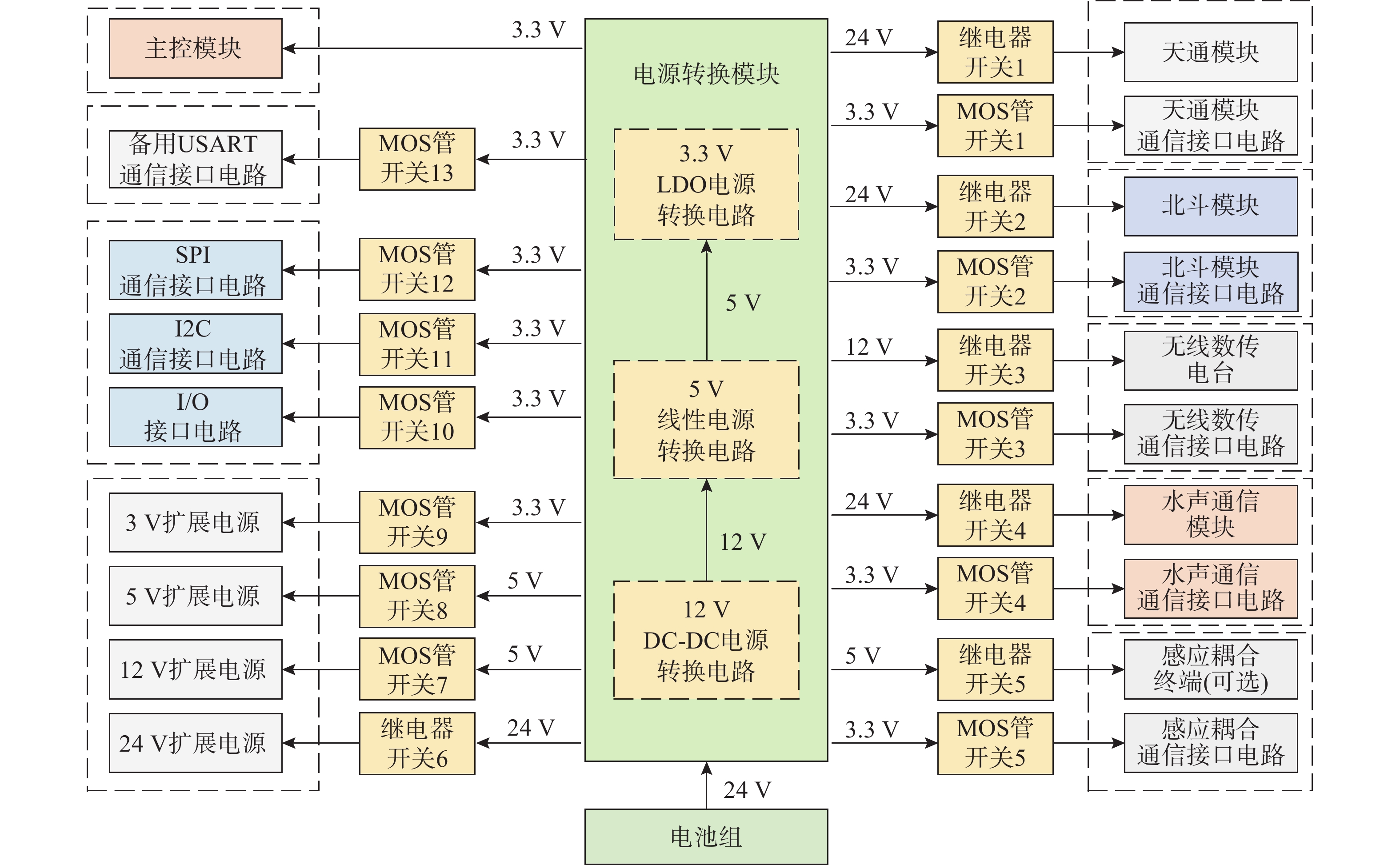 针对现有深海潜标通信方式存在的通信模式有限、可靠性低、扩展性弱及功耗高等问题, 提出一种基于多源通信链路的跨域中继浮标通信系统设计方法。首先, 介绍了浮标通信系统的组成、工作原理及工作模式, 并阐述了具备多源通信手段和高扩展性的系统硬件设计方案; 其次, 提出一种最优通信链路选择策略, 该策略能够根据各通信链路实时状态完成最优通信链路的动态选择, 从而提升系统通信可靠性和稳定性, 同时, 引入了数据重发机制, 以有效应对通信中断、数据丢包等通信异常情况, 进而确保系统通信准确性与完整性; 最后, 对系统电源管理与功耗优化进行设计, 并提出了一种低功耗控制策略, 以实现系统电源精细化控制与低功耗运行。试验结果表明, 文中所提浮标通信系统设计方法有效可行, 可解决深海潜标通信问题, 实现远距离实时数据传输, 为水下探测装备信息传输提供技术支撑。