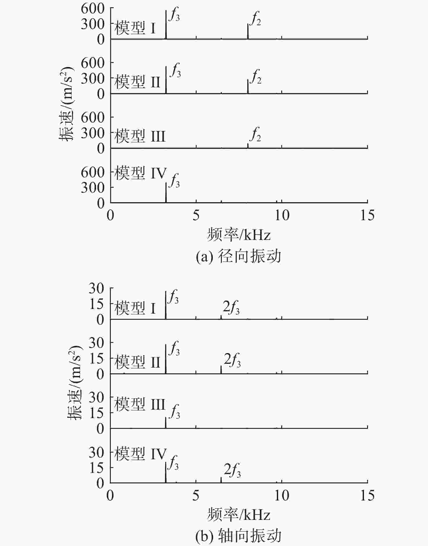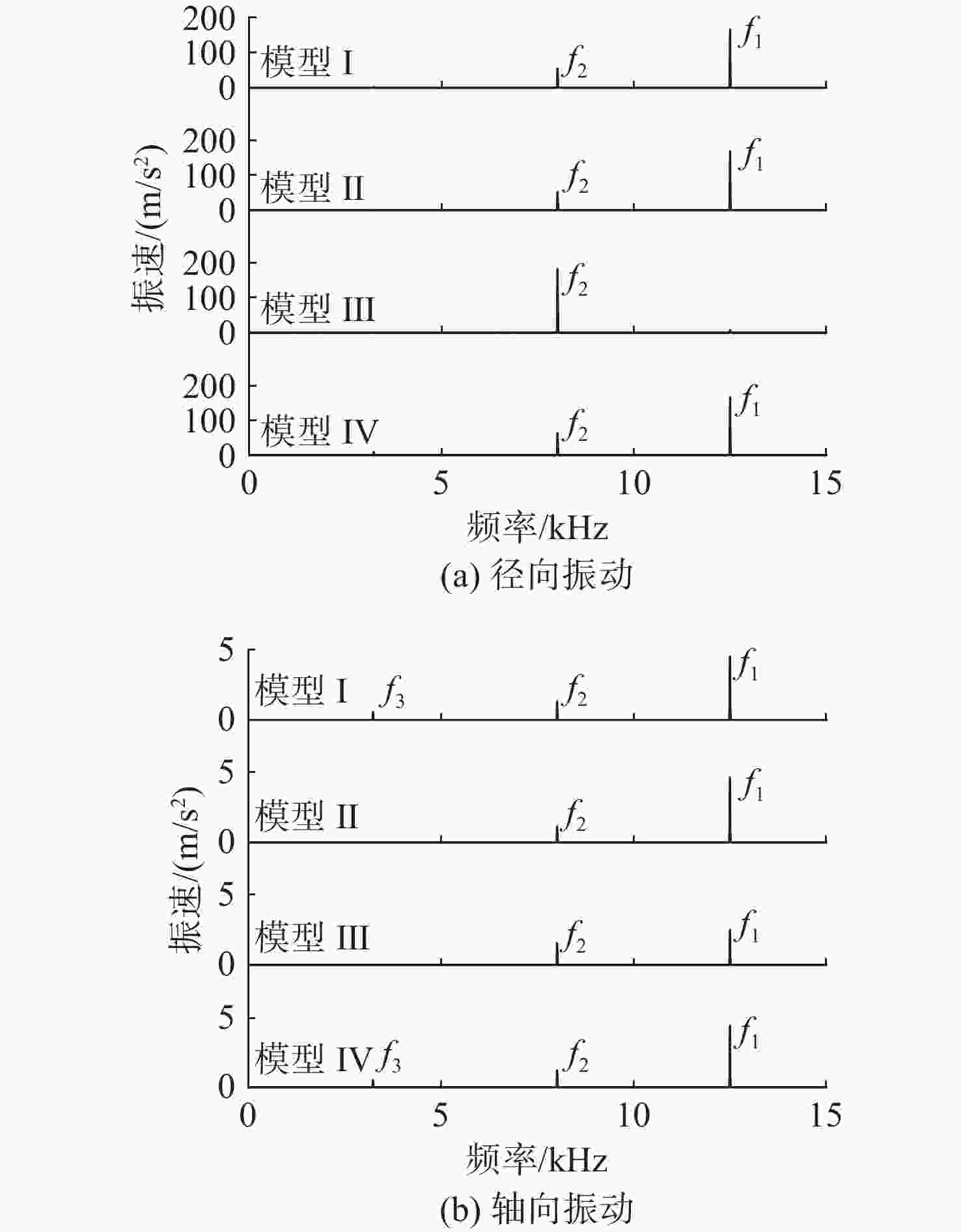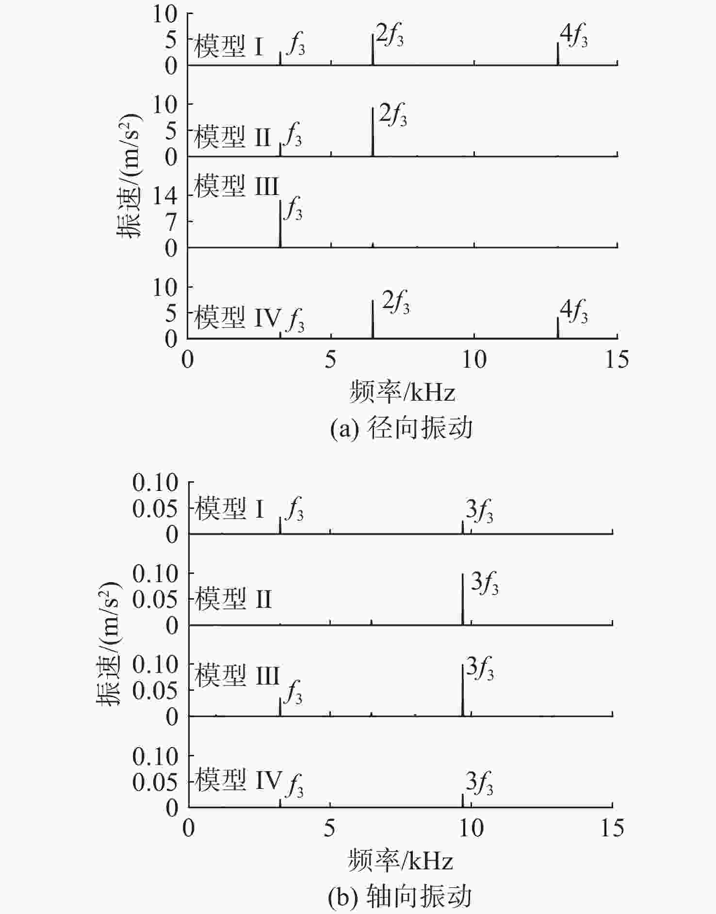 摘要: 为研究箱体、轴和花键联轴器的结构柔性对齿轮啮合刚度和传动系统动力学响应的影响, 对比不同建模方式之间的差异, 文中以功率三分支减速器为研究对象, 建立了全柔体耦合动力学模型以及将不同部件考虑为刚性的动力学模型, 采用时域和频域分析方法, 研究了结构柔性对齿轮啮合刚度和传动系统动力学响应的影响规律。研究结果表明: 部件柔性对齿轮啮合刚度的影响可以忽略; 箱体柔性对系统振动特性影响较大, 尤其当箱体模态与啮频重合或接近时, 共振会使系统振动响应幅值显著增大; 忽略轴的柔性可能导致部分啮频谱线丢失; 花键联轴器柔性仅影响其连接轴的振动特性, 对系统其他部分的振动响应影响较小。因此根据分析目的的不同, 需要采用不同的分析模型。分析啮合刚度时, 仅需要建立刚体模型; 而分析系统振动特性时, 则需要使用全柔体模型。Abstract: To investigate the effect of structural flexibility of the housing, shaft, and spline coupling on the meshing stiffness of the gear and dynamic response of the powertrain system and compare the differences between different modeling methods, a power tri-branching reducer was taken as the object, and a fully flexible coupled dynamics model was established, as well as dynamic models considering different components as rigid. The influence of structural flexibility on meshing stiffness of the gear and dynamic response of the powertrain system was studied using time domain and frequency domain analysis. The results show that the effect of structural flexibility on meshing stiffness of the gear can be ignored; the flexibility of the housing has a significant impact on the vibration characteristics of the system, especially when the housing mode coincides or approaches the mesh frequency; the resonance makes the vibration response amplitude of the system significantly increase; ignoring the flexibility of the shaft may result in the loss of spectral lines at certain mesh frequencies; the flexibility of a spline coupling only affects the vibration characteristics of its connecting shaft and has a small impact on the vibration responses of other components of the system. Therefore, different analysis models need to be used for different analysis purposes. When analyzing meshing stiffness, only a rigid body model needs to be established. When analyzing the vibration characteristics of the system, it is necessary to use a fully flexible model.