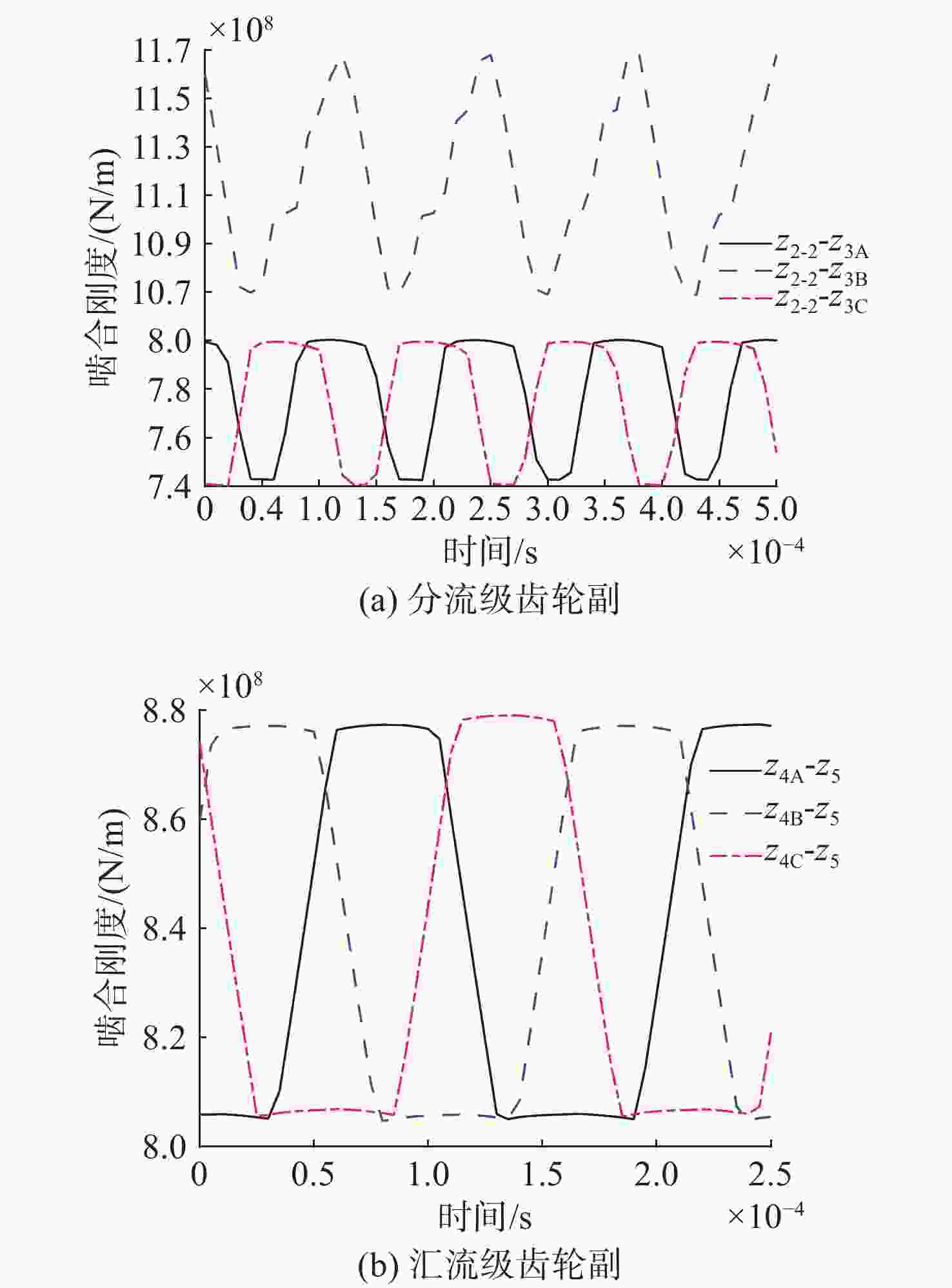 传动级 啮合齿轮副 符号 啮频/Hz 输入级 z1-z2-1 f1 3 230 分流级 z2-2-z3A、z2-2-z3B、z2-2-z3C f2 8 010 汇流级 z4A- z5、z4B- z5、z4C- z5 f3 12 500 -