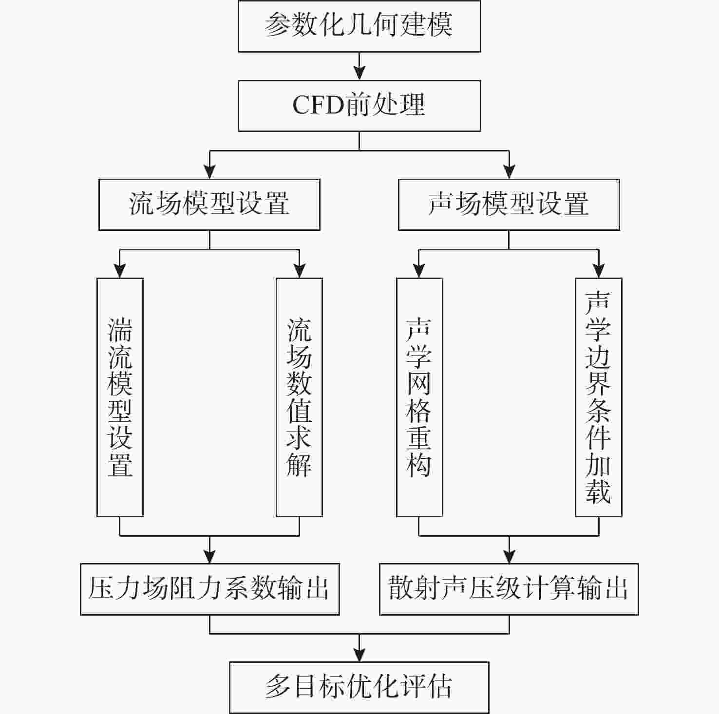Abstract: To address the technical bottleneck in balancing hydrodynamic efficiency and acoustic detection performance during the design of acoustic adaptation structures for long-endurance underwater gliders(UGs), this study proposed a dual-objective collaborative design method integrating computational fluid dynamics-finite element method(CFD-FEM) co-simulation. By coupling simulation of turbulent flow in arbitrary regions-computational continuum mechanics+(STAR-CCM+) for viscous flow analysis and COMSOL Multiphysics for acoustic-structure interaction, a parametric geometric model was proposed based on the Myring equation, utilizing the sharpness factor and aspect ratio as key variables. Multi-objective collaborative optimization was carried out by adopting intelligent optimization algorithms. The results indicate that the optimized acoustic adaptation structure achieves a total drag reduction of 10.4%–15.6% across a speed range of 0.5–3 m/s. Specifically, the configuration with an aspect ratio of 1.875 and a sharpness factor n = 2 exhibits a resistance reduction to 8.178 N at 1 m/s. Regarding acoustic performance, under 2 000 Hz plane wave incidence, the scattered sound pressure level increases by 1.5 dB; sidelobe suppression capability is enhanced by 2–3 dB, and acoustic reception directivity is improved significantly. Validation through angle of attack tests demonstrates that the optimized solution maintains drag reductions of 6%-17% within a ±10° angle of attack, effectively resolving the conflicting requirements between hydrodynamic resistance and acoustic performance inherent in traditional designs. The constructed “fluid-structure-acoustics” multiphysics collaborative optimization paradigm provides theoretical support for the engineering design of next-generation long-endurance, high-detection, and composite UGs and expands the UG multidisciplinary optimization methodology system. -