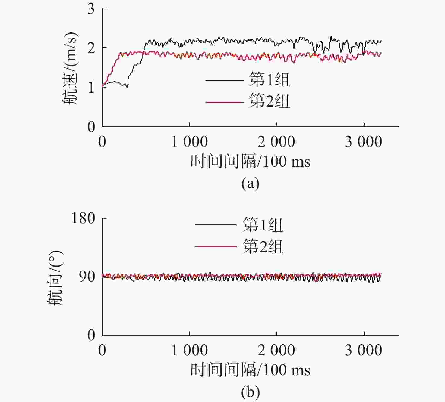 疲劳度测试 平均航速/(m/s) 平均航向/(°) 标准值航向偏差/(°) 第1组 1.99 89.13 −0.87 第2组 1.77 91.70 +1.70 -