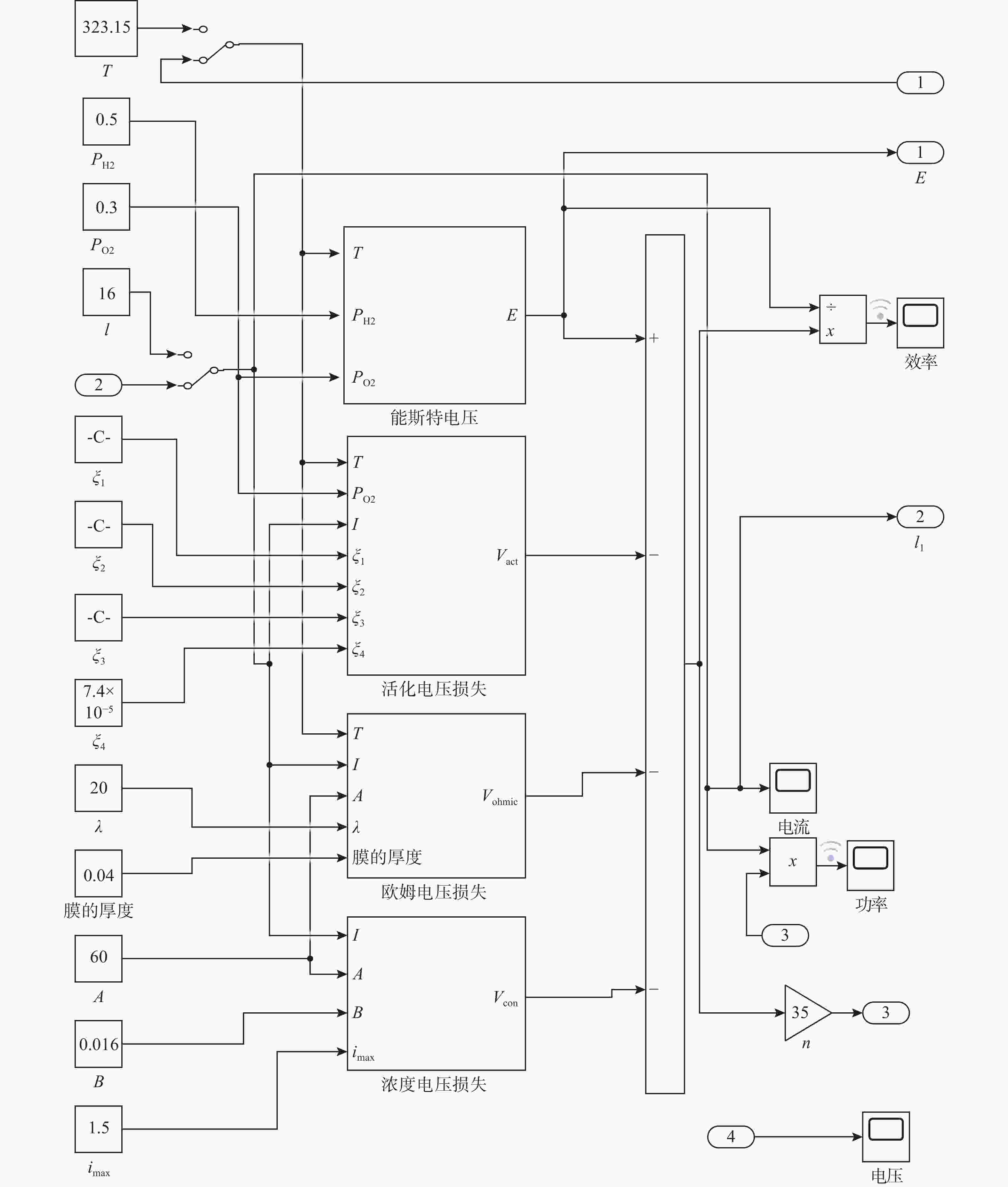 表 1 PEMFC主要参数