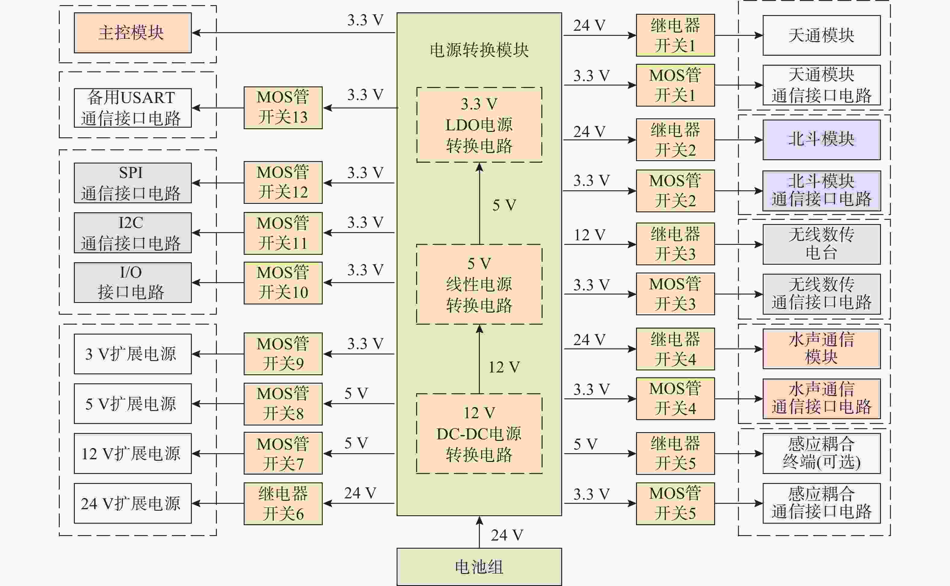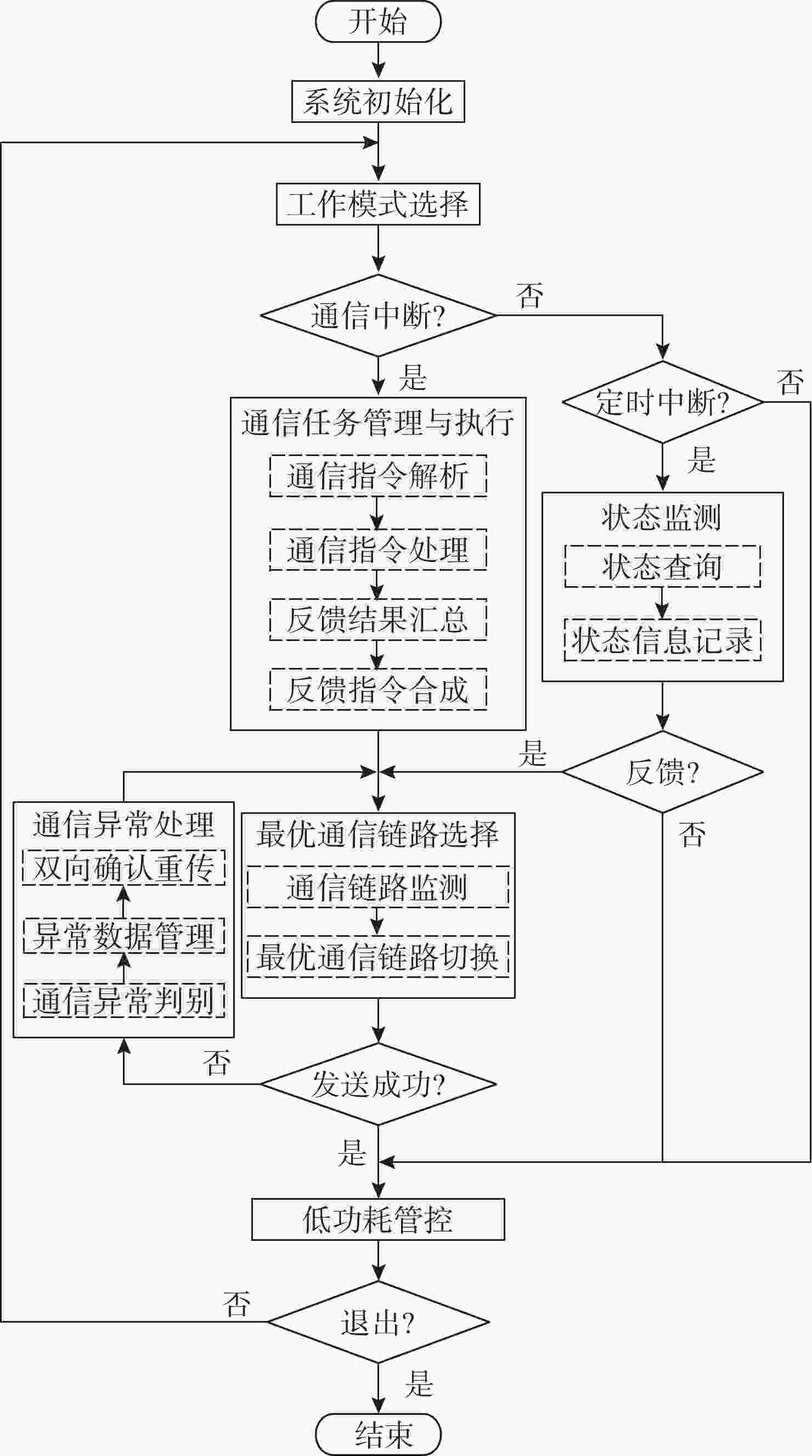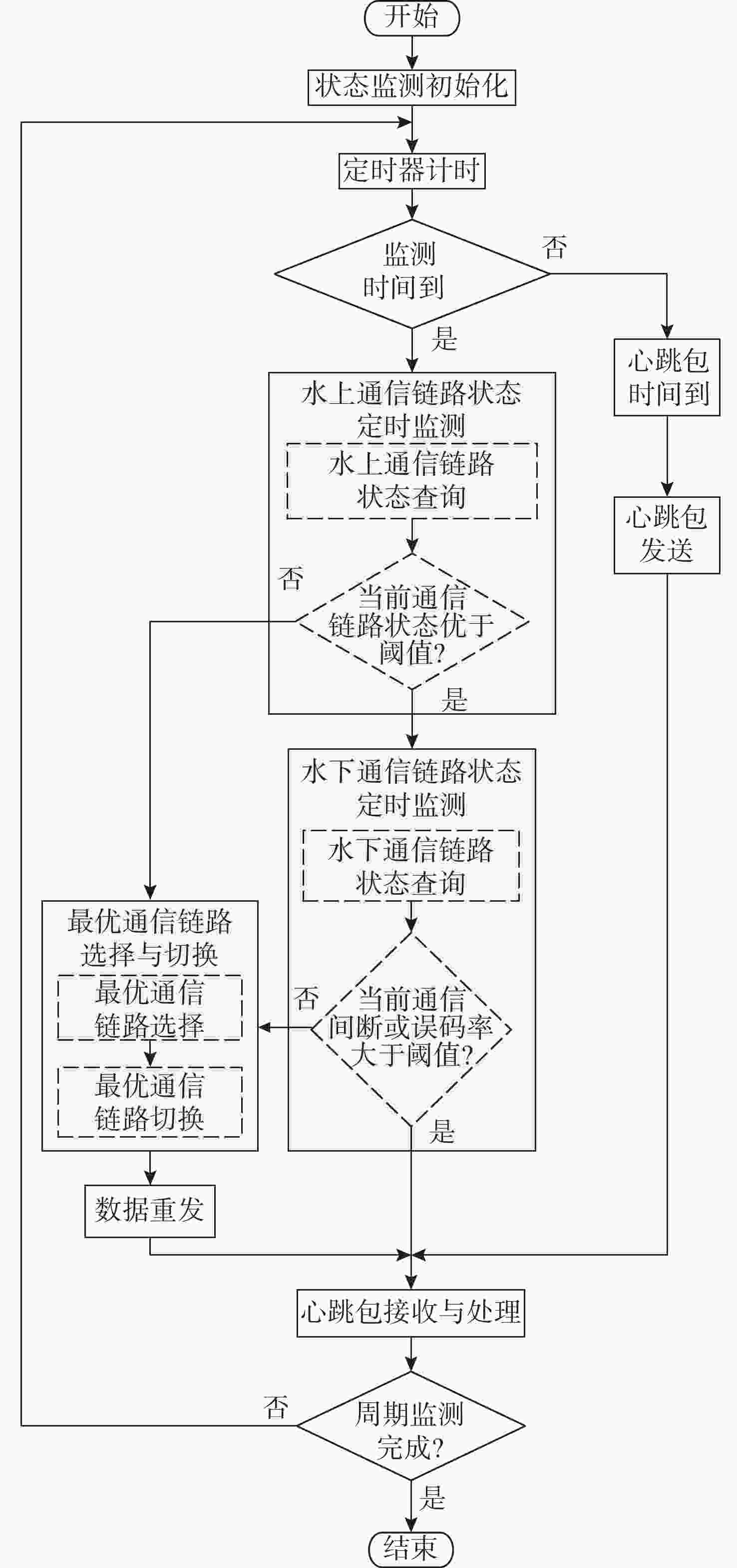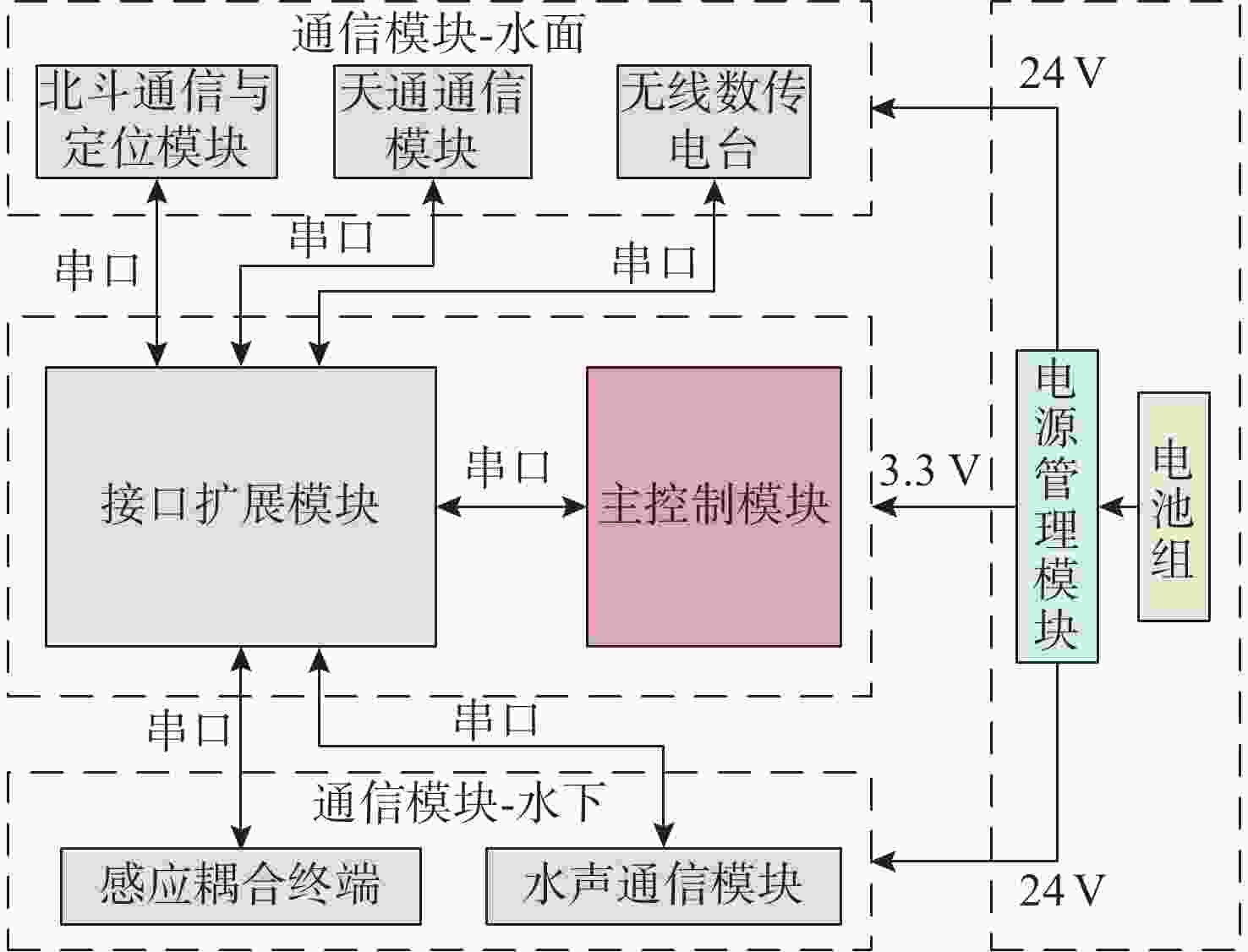 摘要: 针对现有深海潜标通信方式存在的通信模式有限、可靠性低、扩展性弱及功耗高等问题, 提出一种基于多源通信链路的跨域中继浮标通信系统设计方法。首先, 介绍了浮标通信系统的组成、工作原理及工作模式, 并阐述了具备多源通信手段和高扩展性的系统硬件设计方案; 其次, 提出一种最优通信链路选择策略, 该策略能够根据各通信链路实时状态完成最优通信链路的动态选择, 从而提升系统通信可靠性和稳定性, 同时, 引入了数据重发机制, 以有效应对通信中断、数据丢包等通信异常情况, 进而确保系统通信准确性与完整性; 最后, 对系统电源管理与功耗优化进行设计, 并提出了一种低功耗控制策略, 以实现系统电源精细化控制与低功耗运行。试验结果表明, 文中所提浮标通信系统设计方法有效可行, 可解决深海潜标通信问题, 实现远距离实时数据传输, 为水下探测装备信息传输提供技术支撑。Abstract: Aiming at the problems of limited communication modes, low reliability, weak scalability, and high power consumption existing in deep-sea submersible communication methods, this paper proposed a cross-domain relay buoy communication system design method based on multi-source communication links. Firstly, the composition, working principle, and working mode of the buoy communication system were introduced, and the system hardware design scheme with multiple communication methods and high scalability was described. Secondly, an optimal communication link selection strategy was proposed, which could dynamically select the optimal communication link according to the real-time status of each link, so as to improve the reliability and stability of system communication. Additionally, the data retransmission mechanism was introduced to effectively address the abnormal communication problems such as communication interruption and data packet loss, so as to ensure the accuracy and integrity of system communication. Finally, the system power management and power consumption optimization were designed, and a low-power control strategy was proposed to realize the refined management of system power supply and efficient low-power operation. Experimental results demonstrate that the design method of the buoy communication system proposed in this paper is effective and feasible, which can effectively solve the problems existing in the deep-sea submersible communication, achieve real-time data transmission over long distances, and provide technical support for improving the information transmission ability of underwater detection equipment.