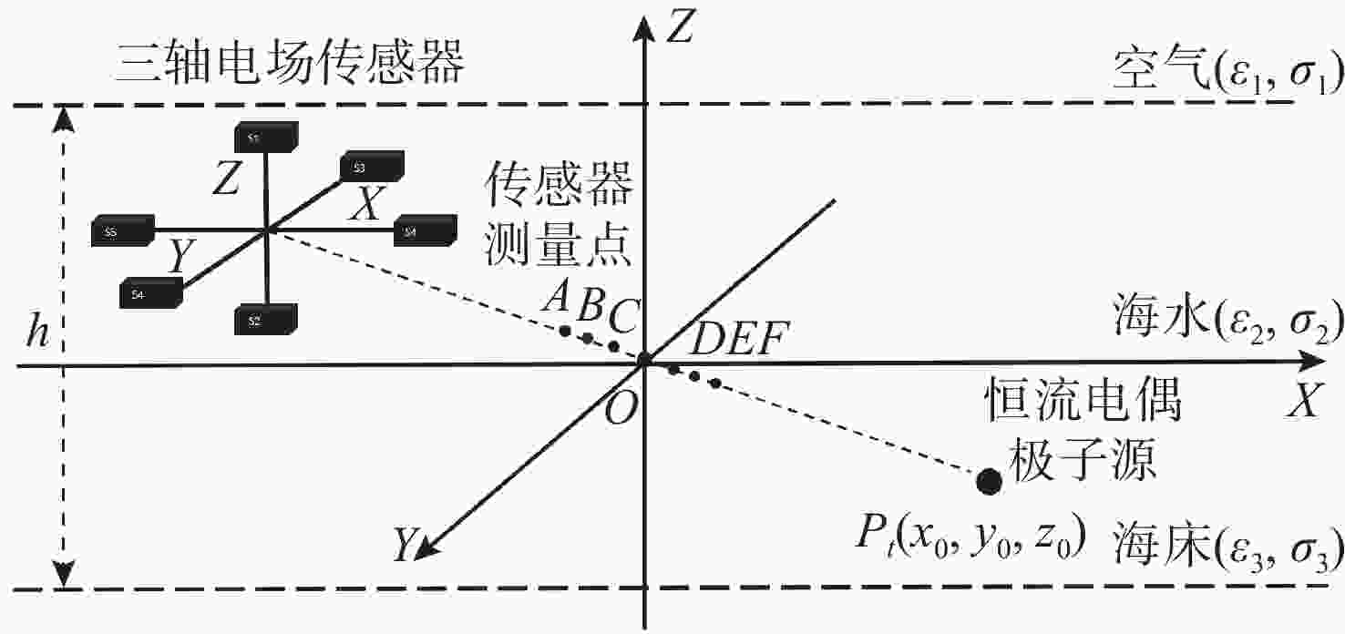 摘要: 为实现浅海环境下水下目标的远距离高精度定位, 提出一种基于粒子群差分进化混合算法(PSODE)的水下目标电场定位方法。从三层媒质电场辐射模型出发, 将水下目标等效为恒流电偶极子源, 利用非规则布放的三轴电场传感器阵列获取电场测量数据, 构建基于信噪比动态权重与鲁棒Huber损失的目标函数, 将定位问题转化为目标函数最小化问题。针对传统差分进化(DE)算法易早熟收敛、粒子群优化(PSO)算法局部搜索能力不足等问题, 提出一种协同优化机制。该机制通过DE变异交叉生成多样化解集, 并结合PSO的动态权重更新策略强化局部搜索能力, 同时引入自适应参数调整与概率选择机制, 在全局探索与局部开发之间实现更优平衡, 从而有效降低算法陷入局部最优解的风险。仿真实验结果表明, 所提方法具有初值不敏感、抗噪性强、收敛速度快等优势, 相比传统PSO和DE算法具有更高的定位精度, 为浅海环境下的水下目标高精度定位提供有效解决方案。Abstract: To achieve long-distance and high-precision positioning of underwater targets in shallow sea environments, a novel underwater target electric field positioning method based on the particle swarm optimization and differential evolution(PSODE) hybrid algorithm was proposed. Starting from the three-layer medium electric field radiation model, the underwater target was equivalent to a constant current electric dipole source. The electric field measurement data were obtained by using the irregularly arranged three-axis electric field sensor array, and a target function based on the dynamic weight of the signal-to-noise ratio and the robust Huber loss was constructed. The positioning problem was transformed into the minimization problem of the target function. To address the premature convergence of the traditional differential evolution(DE) algorithm and the insufficient local search ability of the particle swarm optimization(PSO) algorithm, a collaborative optimization mechanism was proposed. This mechanism generated diverse solution sets through DE mutation and crossover and combined the dynamic weight update strategy of PSO to enhance the local search ability. Meanwhile, an adaptive parameter adjustment and probability selection mechanism was introduced to achieve a better balance between global exploration and local exploitation, thereby effectively reducing the risk of the algorithm getting trapped in local optimal solutions. Simulation experiment results show that the proposed method has the advantages of being insensitive to initial values, strong anti-noise ability, and fast convergence speed. Compared with the traditional PSO and DE algorithms, it has higher positioning accuracy, providing an effective solution for high-precision positioning of underwater targets in shallow sea environments.