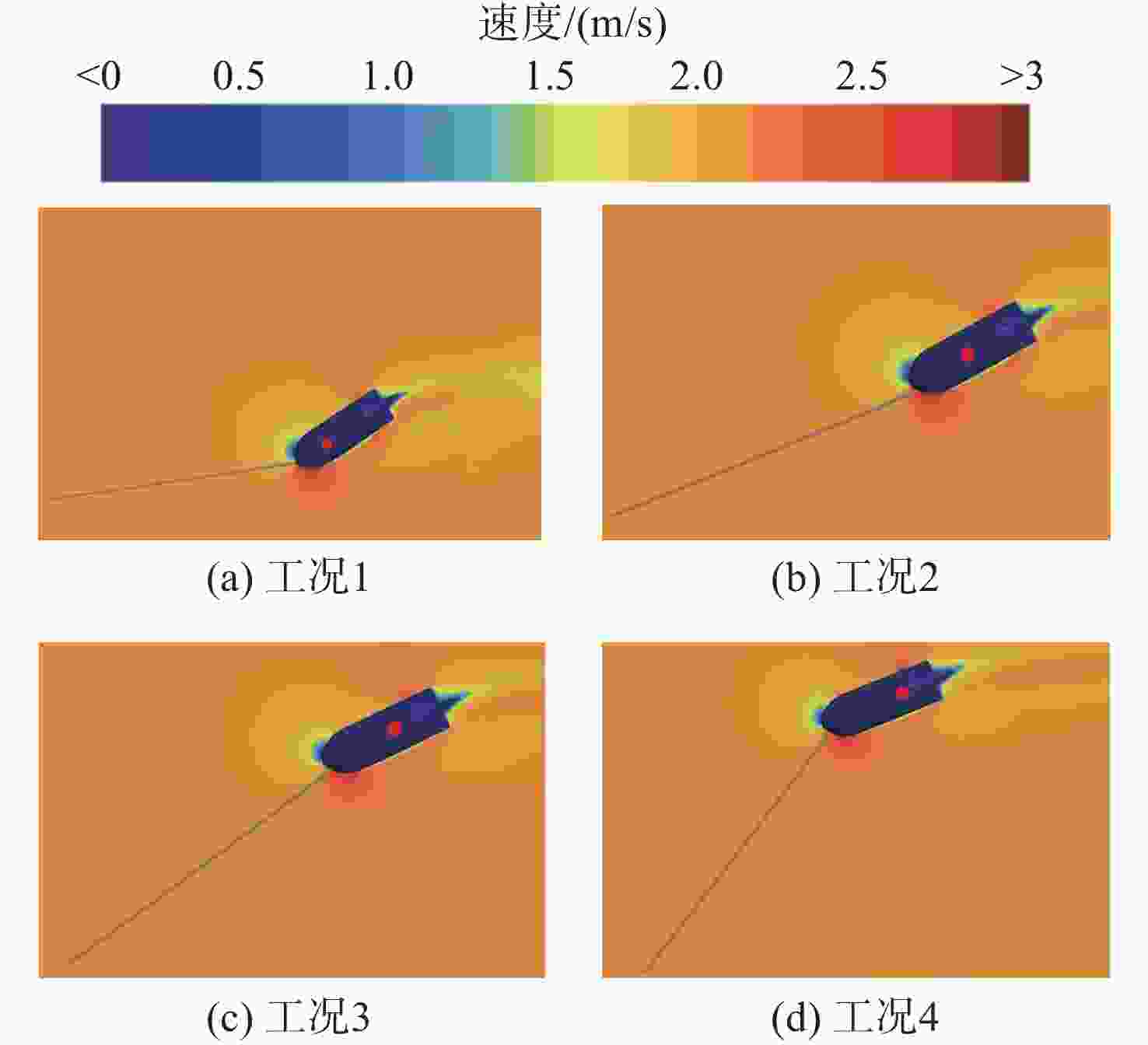 工况 拖曳点横坐标/m $\alpha $/(°) 1 0.231 8 30.82 2 0.218 8 45.10 3 0.201 8 59.61 4 0.191 8 67.16 -