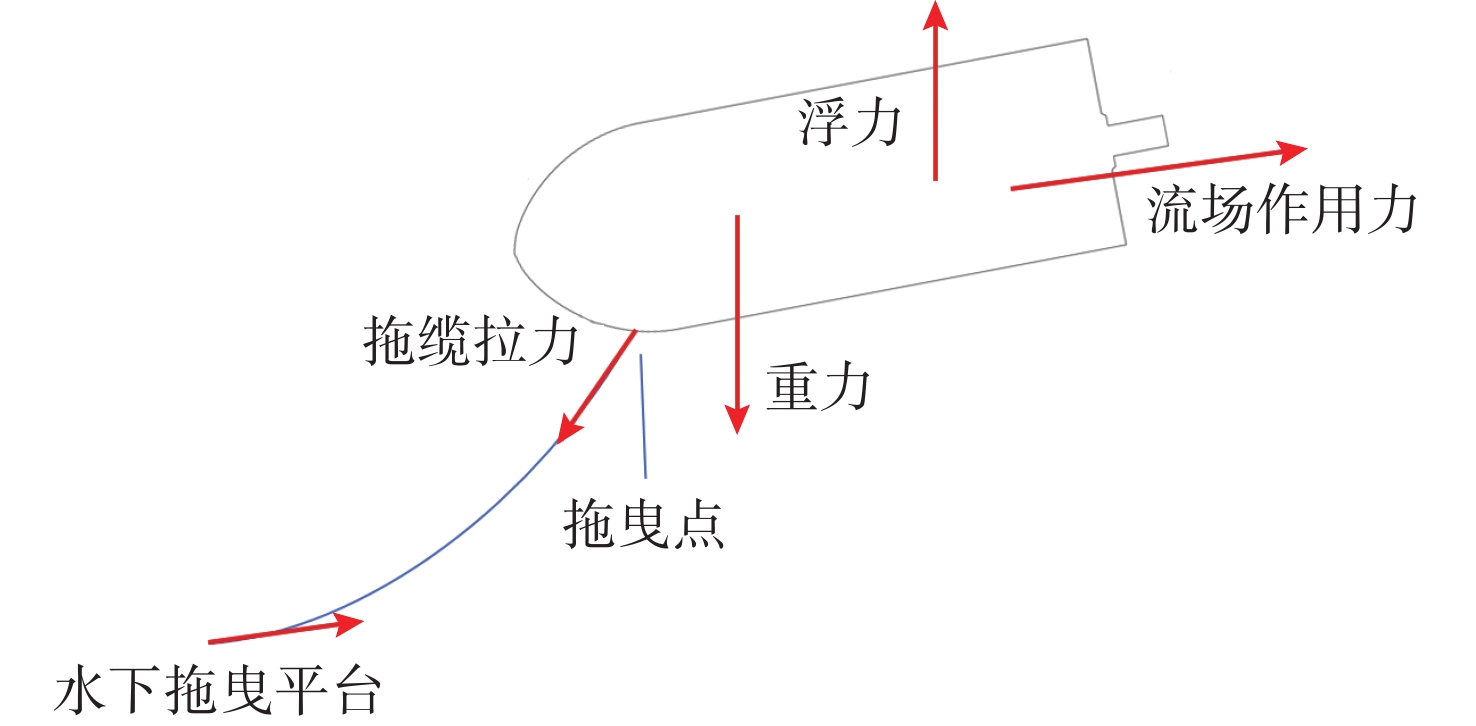 参数/单位 数值 质量/kg 6.928 总长度/mm 540 中段直径/mm 170 x方向浮心位置/m 0.243 8 y方向浮心位置/m 0 z方向浮心位置/m 0 x方向转动惯量/(kg/m2) 0.028 435 y方向转动惯量/(kg/m2) 0.107 598 z方向转动惯量/(kg/m2) 0.106 637 表 2 不同网格数量下拖曳体稳态阻力与升力大小