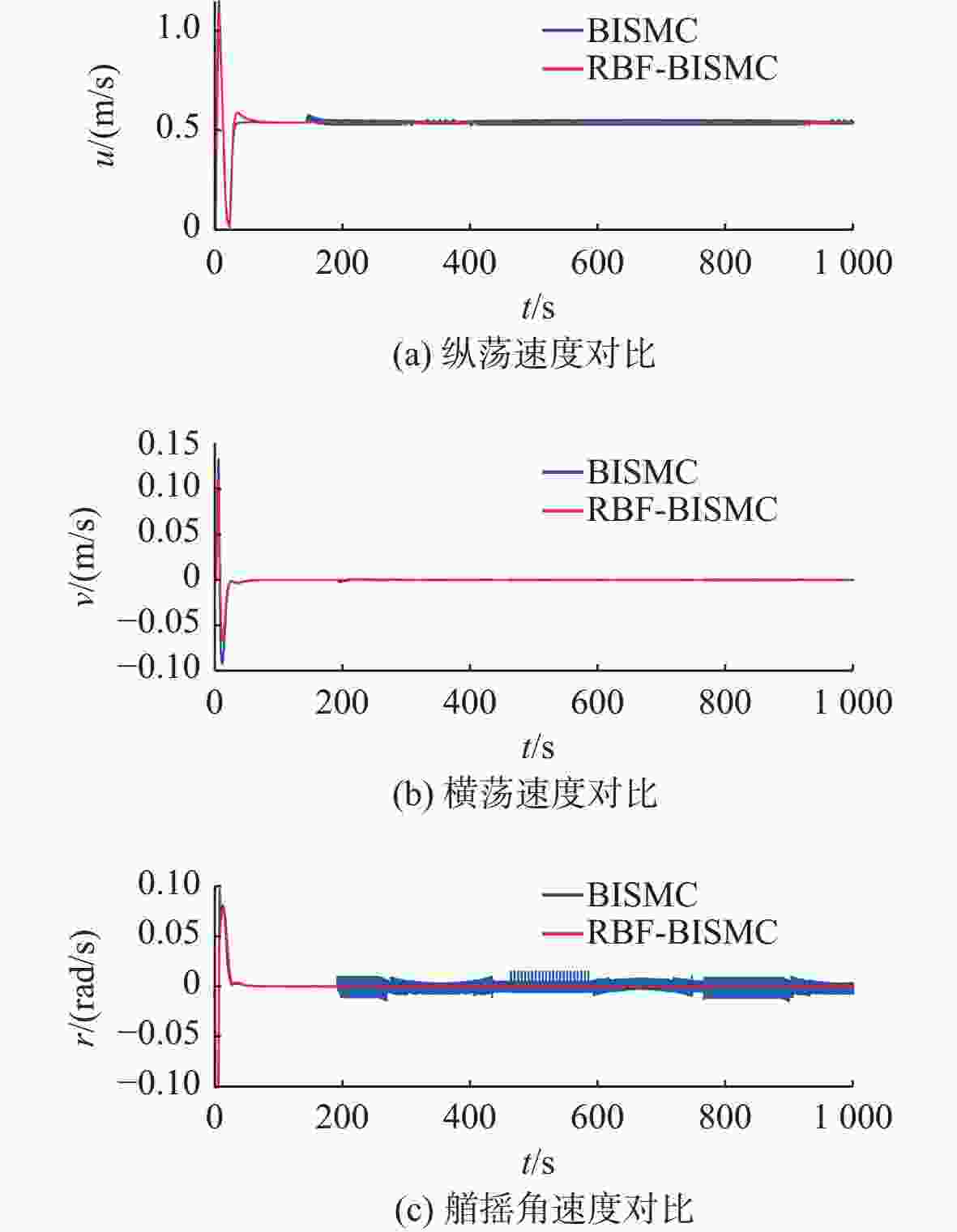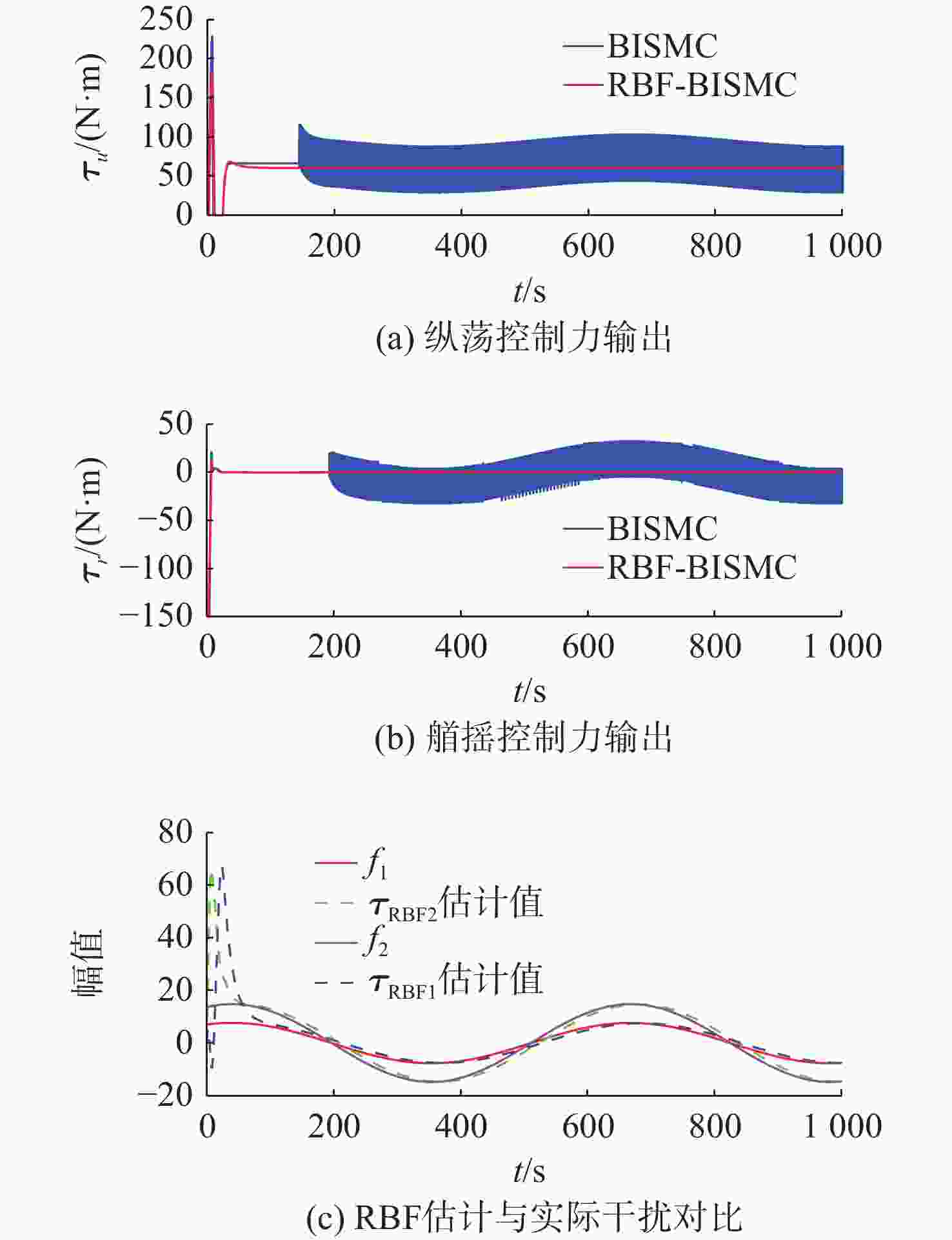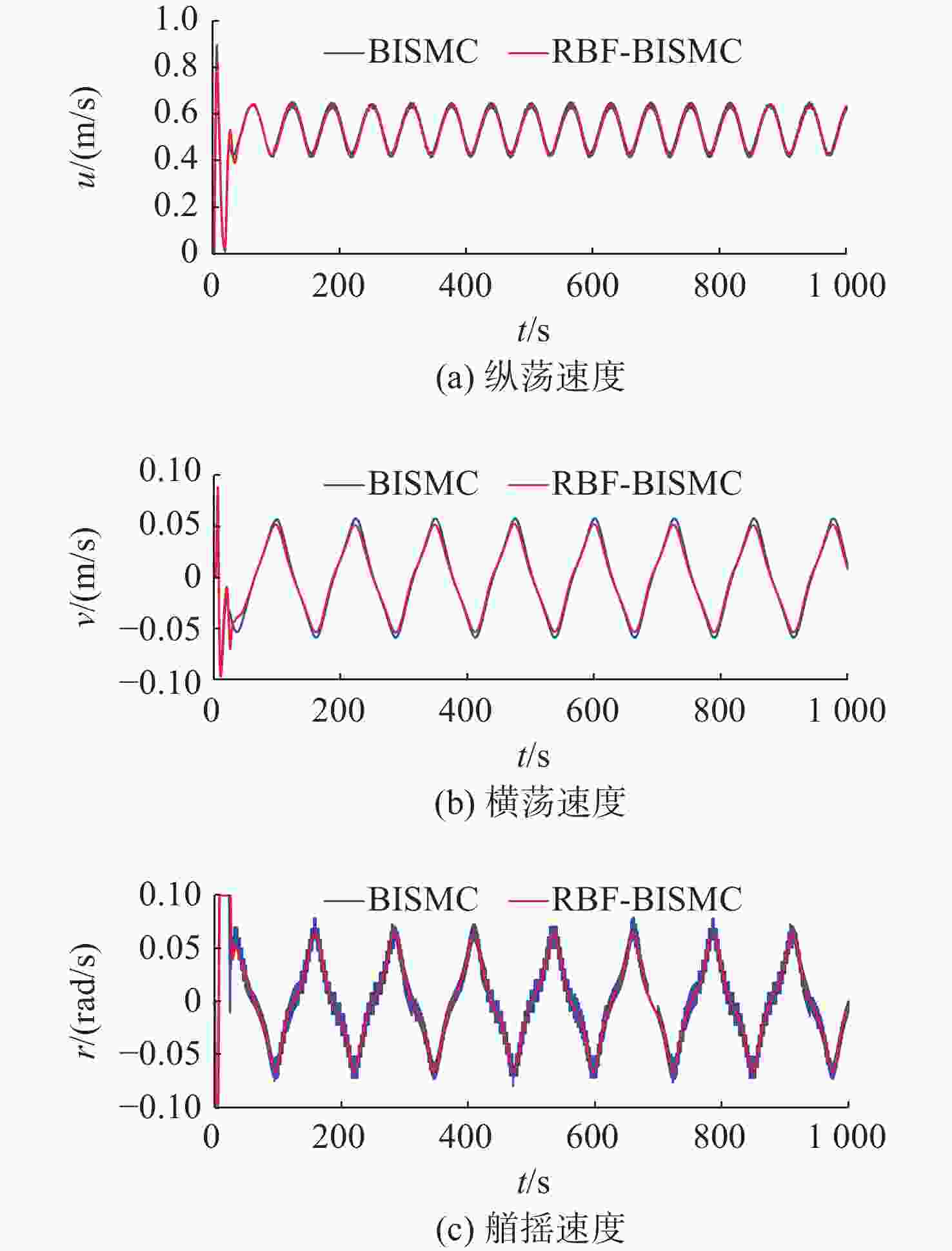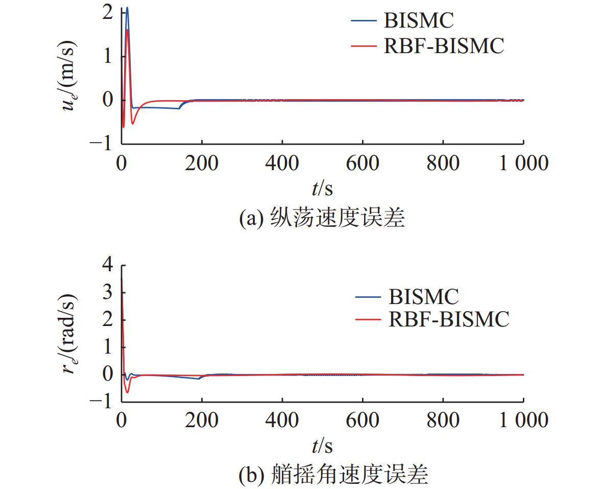 摘要: 针对欠驱动自主水下航行器(AUV)在复杂海洋环境中水平面轨迹跟踪控制难度大、抗干扰能力弱的问题, 提出一种基于径向基函数(RBF)神经网络的欠驱动AUV反步积分滑模控制(BISMC)轨迹跟踪控制方法。首先, 运用反步控制方法设计运动学控制器, 得到虚拟控制律和实际控制输入; 其次, 在动力学控制器中, 引入积分滑模控制, 考虑系统的不确定因素及可能存在的外部干扰, 同时引入RBF神经网络在线逼近系统未知非线性项, 有效解决传统滑模控制中抖振效应与参数不确定性之间的矛盾; 最后, 将误差作为RBF神经网络的输入, 将RBF神经网络的输出作为切换控制, 从而实现滑模控制律的在线调整。仿真结果表明: 通过与传统的反步滑模控制进行比较, 文中方法可有效消除传统滑模控制中切换项引起的抖振问题, 使系统具有良好的鲁棒性。Abstract: A backstepping integral sliding mode control(BISMC) trajectory tracking control method for underactuated autonomous undersea vehicle(AUV) based on radial basis function(RBF) neural network was proposed to address the challenges of difficult horizontal trajectory tracking control and weak anti-interference ability in complex marine environments. Firstly, a kinematic controller was designed by employing the backstepping control method to obtain virtual control laws and actual control inputs. In the dynamic controller, integral sliding mode control was introduced to account for the uncertainty factors and possible external disturbances of the system. Meanwhile, an RBF neural network was adopted to approximate the unknown nonlinear terms of the system online, effectively resolving the contradiction between the chattering effect and parameter uncertainty in traditional sliding mode control. By taking the error as the input of the RBF neural network and using the output of the RBF neural network as the switching control, the online adjustment of the sliding mode control law was achieved. The simulation results show that compared with the traditional BISMC, the proposed method can effectively eliminate the chattering problem caused by the switching terms in traditional sliding mode control, enabling the system to exhibit strong robustness.