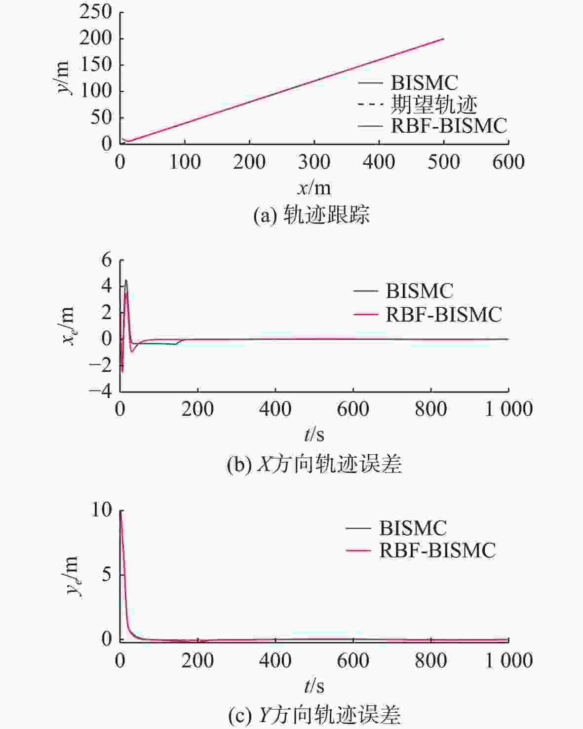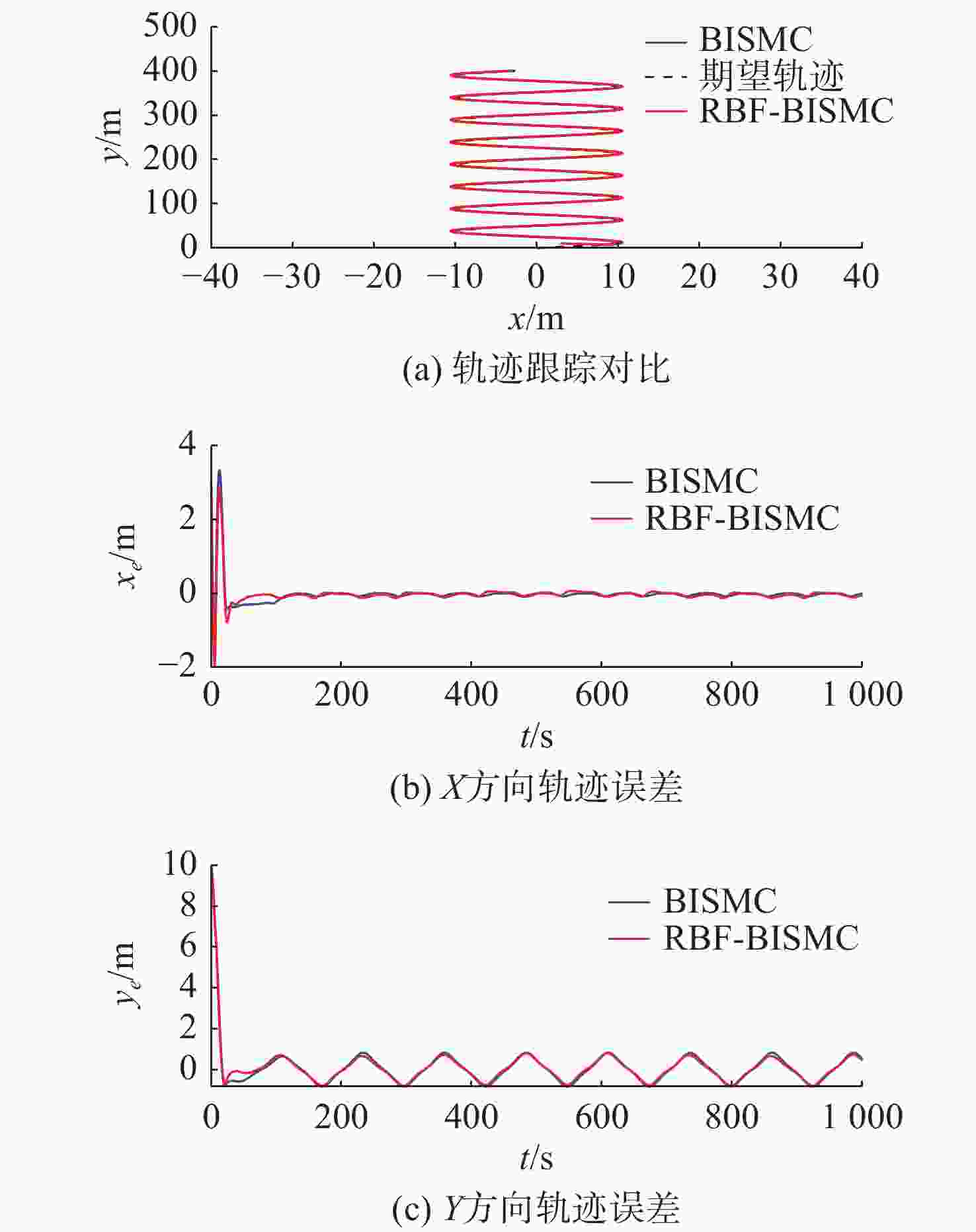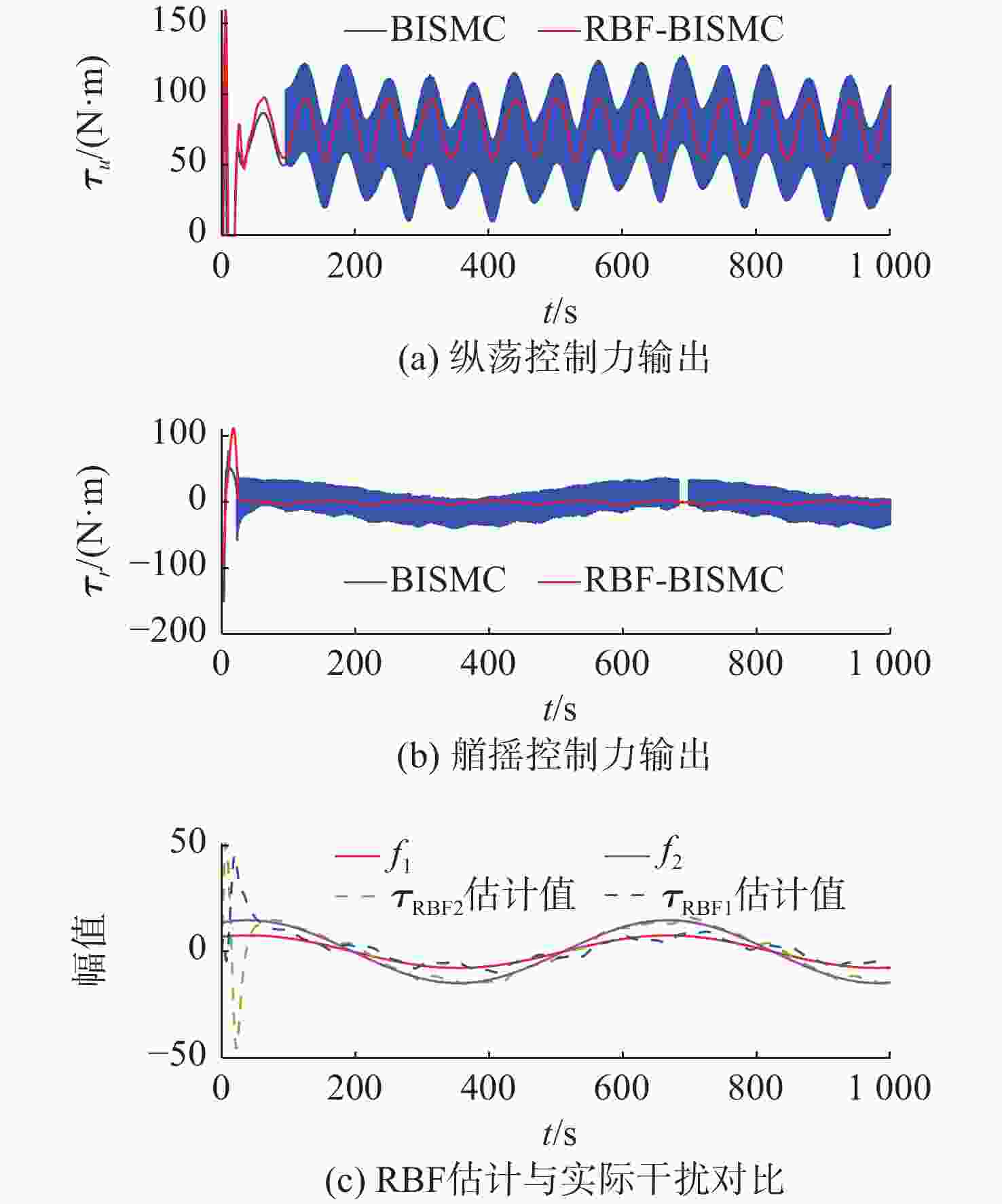 摘要: 针对欠驱动自主水下航行器(AUV)在复杂海洋环境中水平面轨迹跟踪控制难度大、抗干扰能力弱的问题, 提出一种基于径向基函数(RBF)神经网络的欠驱动AUV反步积分滑模控制(BISMC)轨迹跟踪控制方法。首先, 运用反步控制方法设计运动学控制器, 得到虚拟控制律和实际控制输入; 其次, 在动力学控制器中, 引入积分滑模控制, 考虑系统的不确定因素及可能存在的外部干扰, 同时引入RBF神经网络在线逼近系统未知非线性项, 有效解决传统滑模控制中抖振效应与参数不确定性之间的矛盾; 最后, 将误差作为RBF神经网络的输入, 将RBF神经网络的输出作为切换控制, 从而实现滑模控制律的在线调整。仿真结果表明: 通过与传统的反步滑模控制进行比较, 文中方法可有效消除传统滑模控制中切换项引起的抖振问题, 使系统具有良好的鲁棒性。Abstract: A backstepping integral sliding mode control(BISMC) trajectory tracking control method for underactuated autonomous undersea vehicle(AUV) based on radial basis function(RBF) neural network was proposed to address the challenges of difficult horizontal trajectory tracking control and weak anti-interference ability in complex marine environments. Firstly, a kinematic controller was designed by employing the backstepping control method to obtain virtual control laws and actual control inputs. In the dynamic controller, integral sliding mode control was introduced to account for the uncertainty factors and possible external disturbances of the system. Meanwhile, an RBF neural network was adopted to approximate the unknown nonlinear terms of the system online, effectively resolving the contradiction between the chattering effect and parameter uncertainty in traditional sliding mode control. By taking the error as the input of the RBF neural network and using the output of the RBF neural network as the switching control, the online adjustment of the sliding mode control law was achieved. The simulation results show that compared with the traditional BISMC, the proposed method can effectively eliminate the chattering problem caused by the switching terms in traditional sliding mode control, enabling the system to exhibit strong robustness.