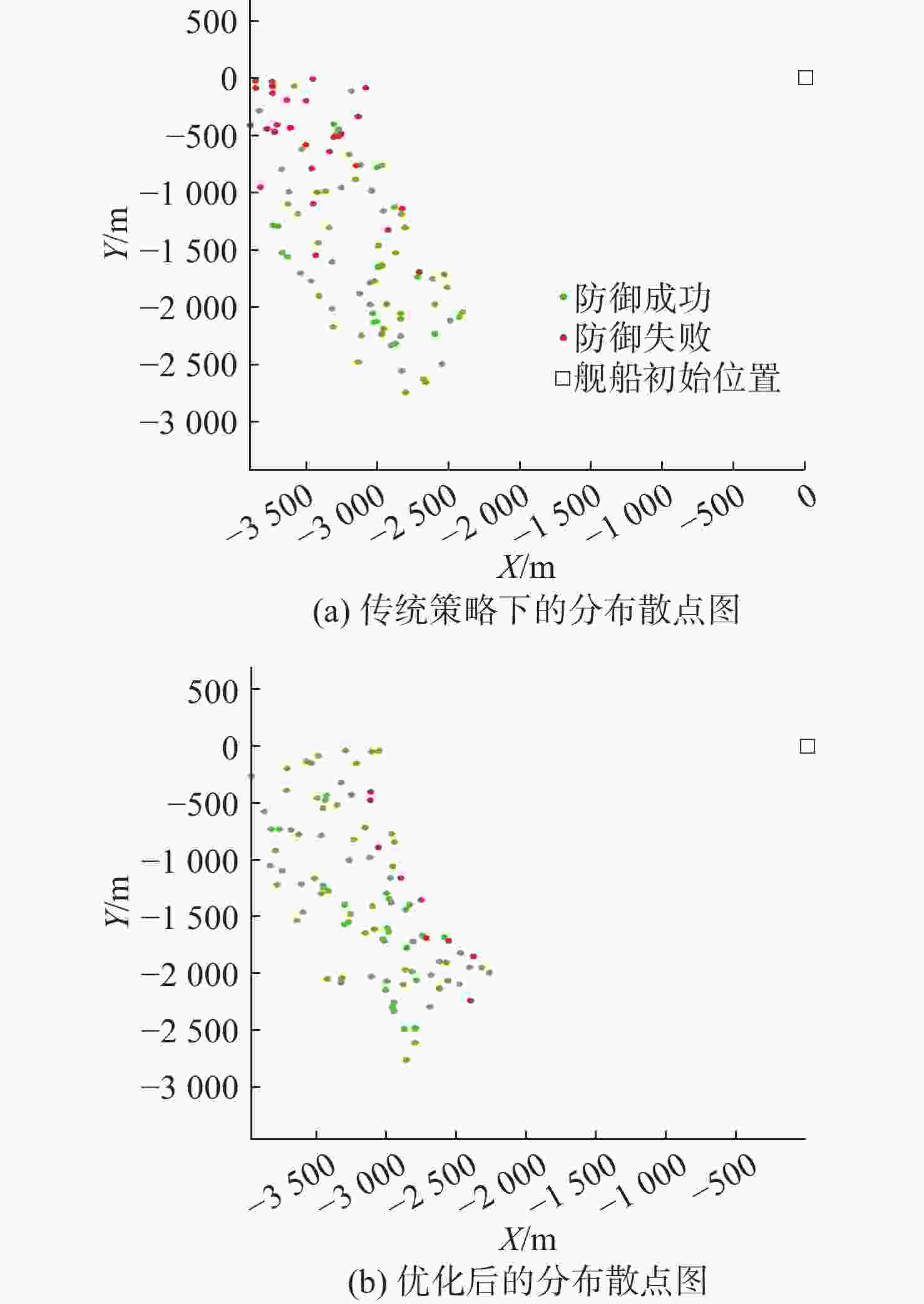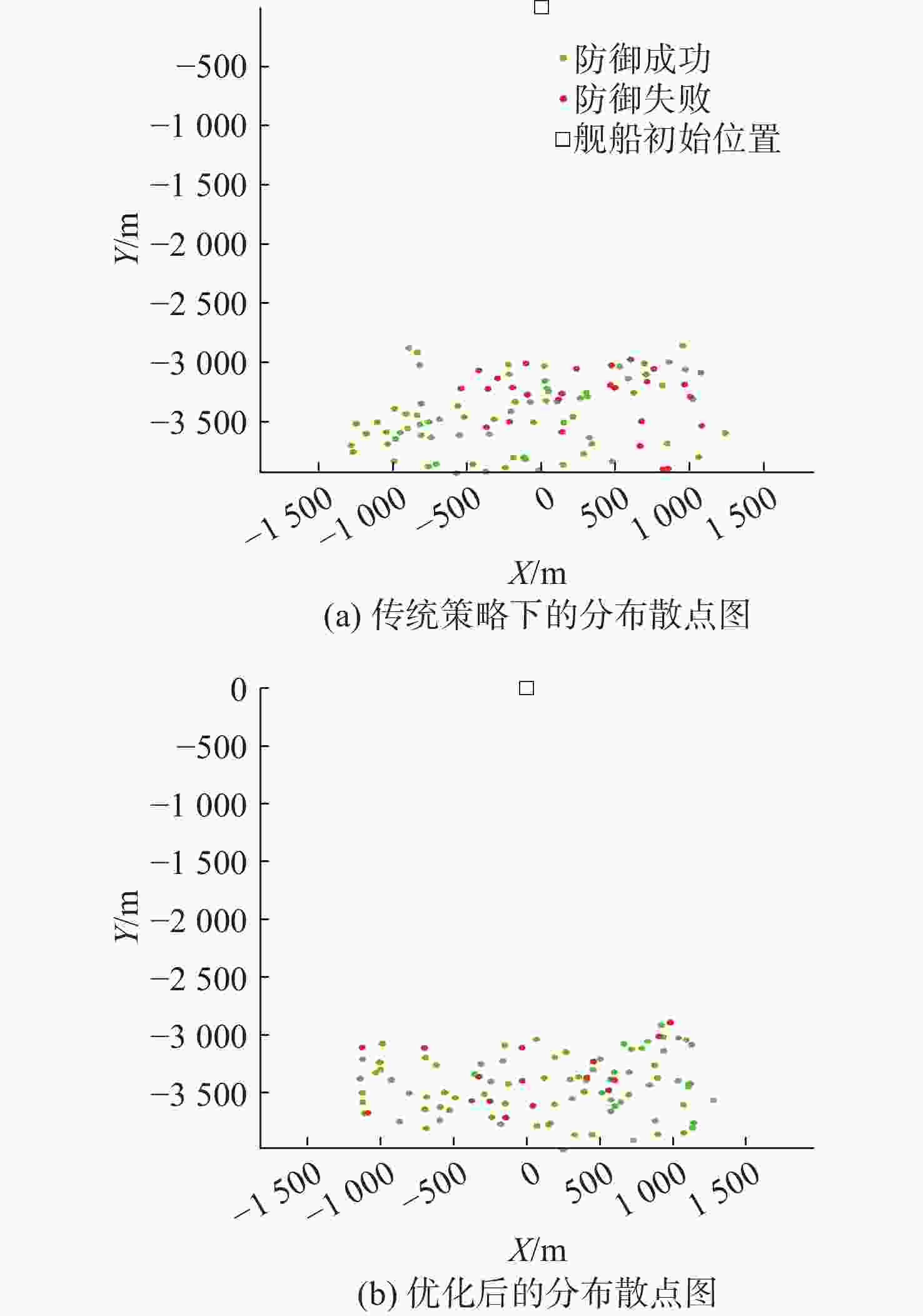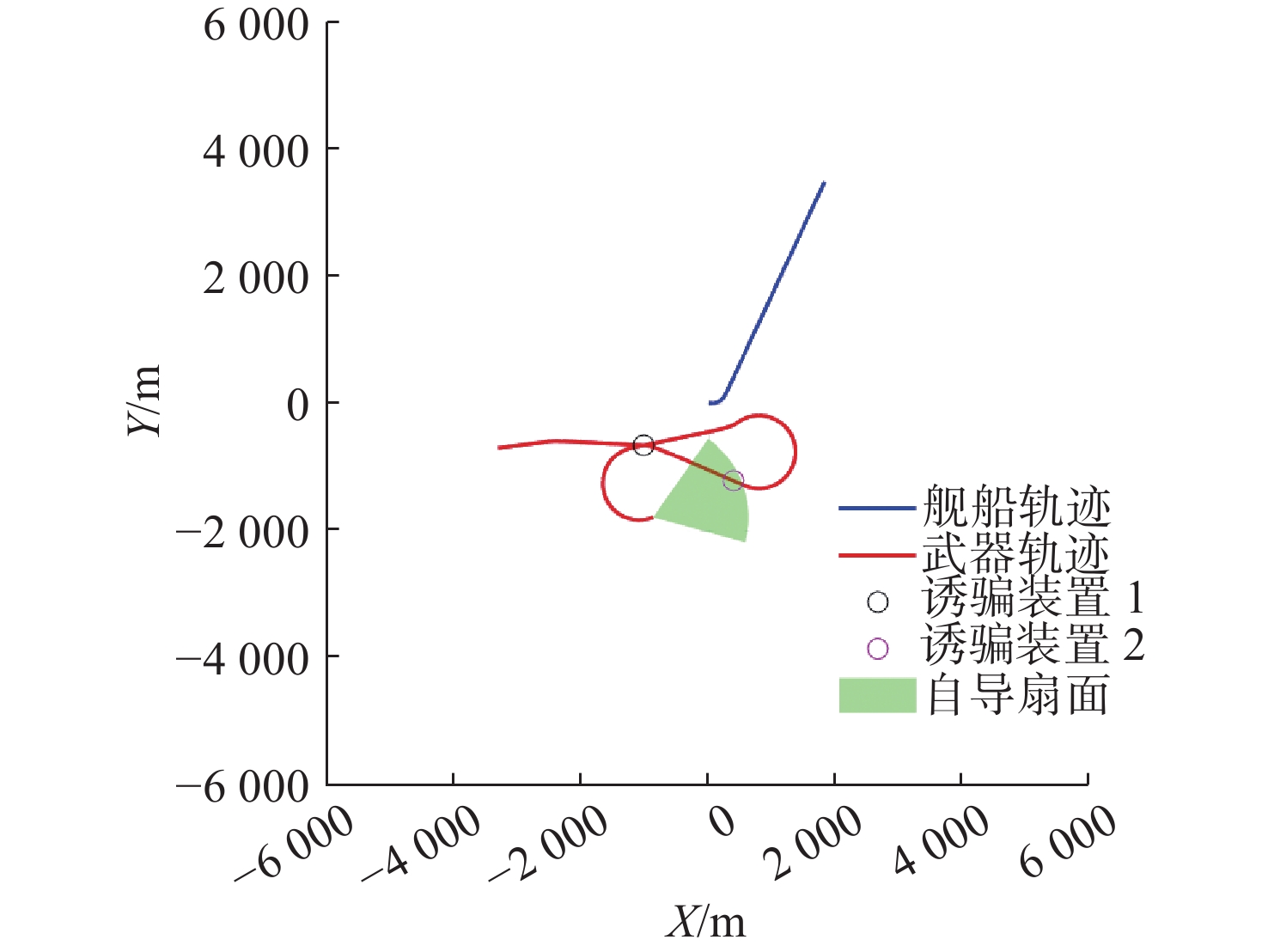 策略参数 优化前 优化后 舰船规避航向/(°) 117.74 123.71 第1枚诱骗装置释放距离/m 1 936.3 1 636.2 第1枚诱骗装置释放方位/(°) −18.8 −36.2 第2枚诱骗装置释放距离/m 1 436.7 1 429.2 第2枚诱骗装置释放方位/(°) −8.6 −5.5 -