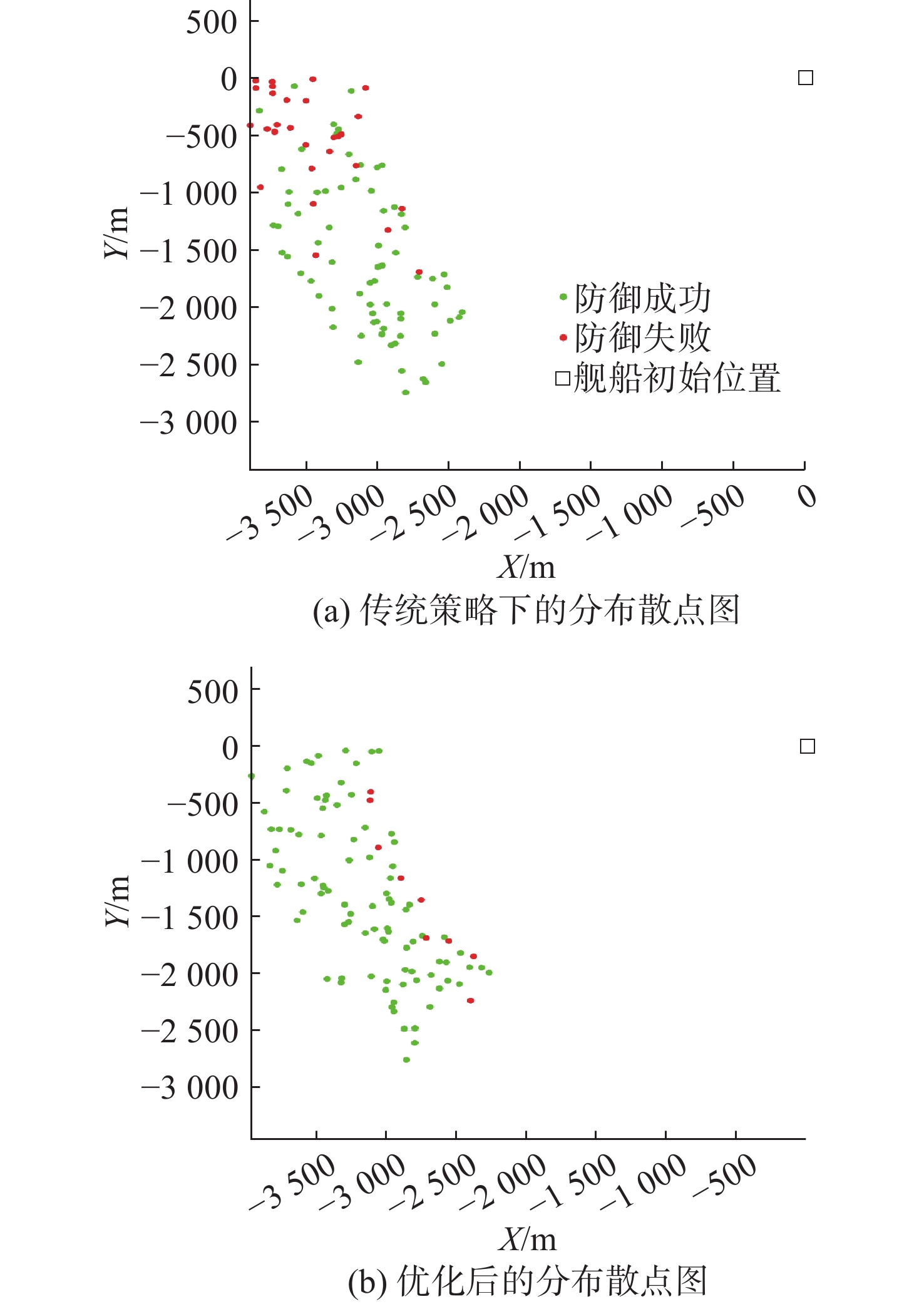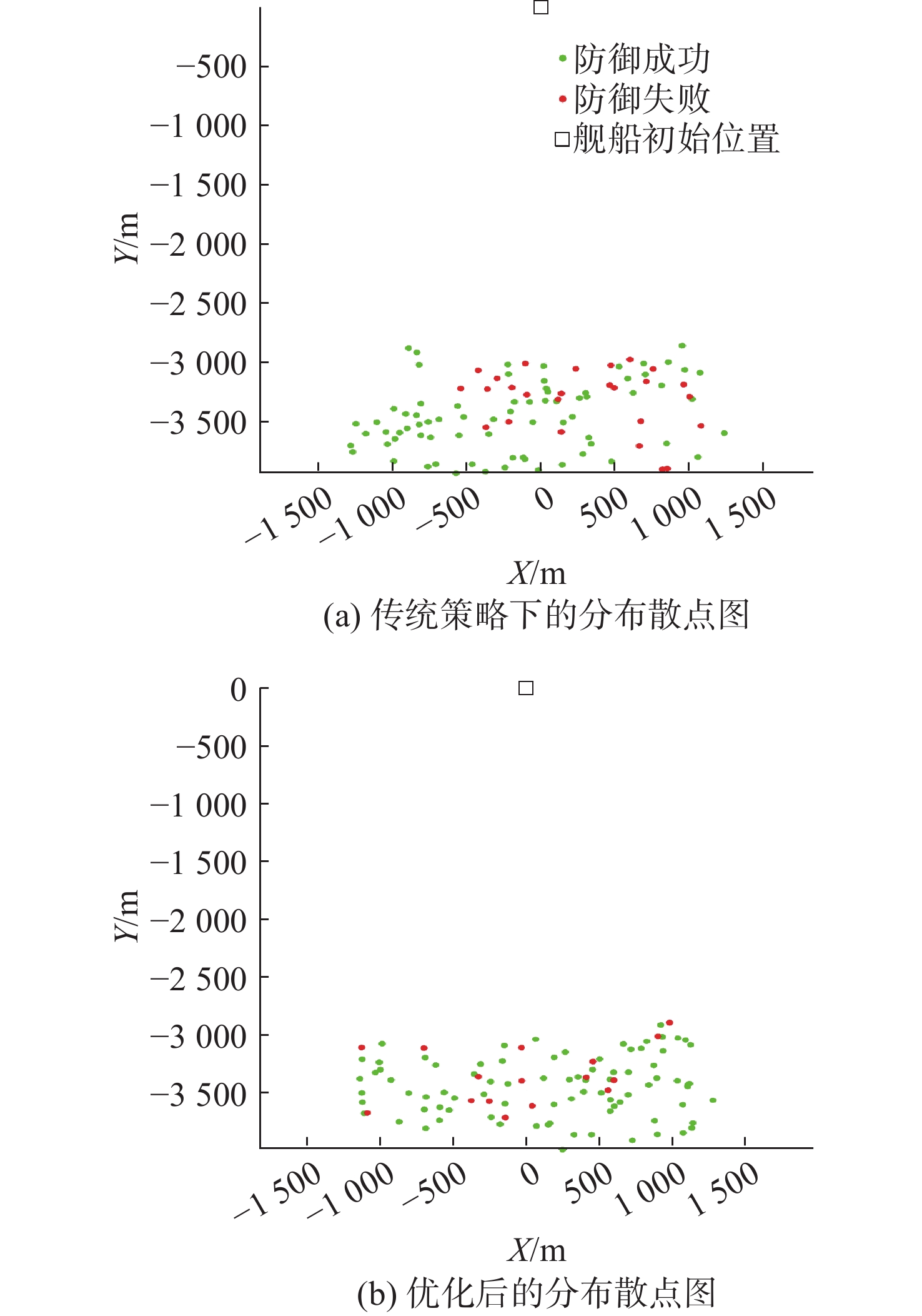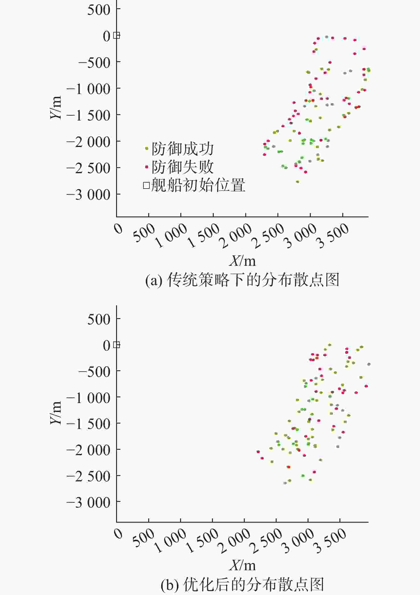 策略参数 优化前 优化后 舰船规避航向/(°) 117.74 123.71 第1枚诱骗装置释放距离/m 1 936.3 1 636.2 第1枚诱骗装置释放方位/(°) −18.8 −36.2 第2枚诱骗装置释放距离/m 1 436.7 1 429.2 第2枚诱骗装置释放方位/(°) −8.6 −5.5 -
