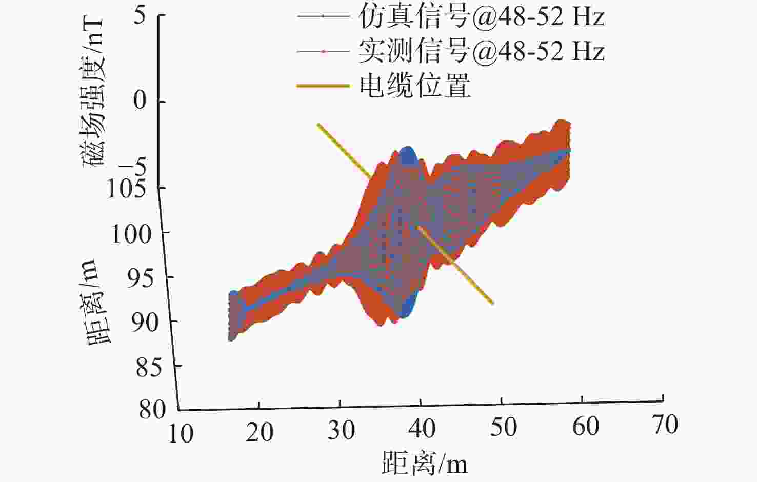 摘要: 针对近岸海底电缆“最后一公里”高精度探测与定位的技术瓶颈, 本研究提出融合工频磁场特征解析的无人机(UAV)航磁综合探测方法。首先建立海底电缆工频磁场正演模型, 通过数值模拟揭示电缆工频磁特征信号的传播衰减规律; 其次, 创新性构建基于工频磁特征的频域信号提取算法, 有效提升强环境噪声背景下弱磁信号的识别精度; 继而提出结合地磁方向的逆向解析定位方法, 实现海底电缆走向的米级空间反演。实验采用自主研发的旋翼式超低空(飞行高度1 m)磁测UAV系统, 在温州近岸海域开展实测验证。结果表明: 系统在潮间带复杂地形条件下进行工频磁特征的航空磁探测作业, 通过对比分析发现, 工频特征定位法较常规磁异常定位法在近岸浅水区具有显著优势, 其定位误差不超过1.8 m, 可准确追踪电缆埋设路径。本研究为海底电缆工程巡检与定位提供了新的技术范式。Abstract: Aiming at the technical bottleneck of high-precision detection and positioning of the "last mile" of nearshore submarine cables, this study proposes a comprehensive unmanned aerial vehicle(UAV) aeromagnetic detection method integrating the analysis of power frequency magnetic field characteristics. Firstly, a forward model of the power frequency magnetic field of submarine cables is established, and the propagation and attenuation law of the power frequency magnetic characteristic signal of the cables is revealed through numerical simulation. Secondly, an innovative frequency-domain signal extraction algorithm based on power frequency magnetic characteristics is constructed, effectively improving the recognition accuracy of weak magnetic signals in the background of strong environmental noise. Then, a reverse analytical positioning method combined with the geomagnetic direction is proposed to achieve the meter-level spatial inversion of the direction of submarine cables. The experiment adopted the self-developed rotorcraft ultra-low-altitude (flight altitude of 1 meter) magnetic measurement unmanned aerial vehicle system to conduct actual measurement and verification in the coastal waters of Wenzhou. The results show that the system conducts aerial magnetic detection operations of power frequency magnetic characteristics under the complex terrain conditions of the intertidal zone. Through comparative analysis, it is found that the power frequency characteristic positioning method has significant advantages over the conventional magnetic anomaly positioning method in the nearshore shallow water area. Its positioning error does not exceed 4 meters, and it can accurately track the cable burial path. This research provides a new technical paradigm for the inspection and positioning of submarine cable projects.