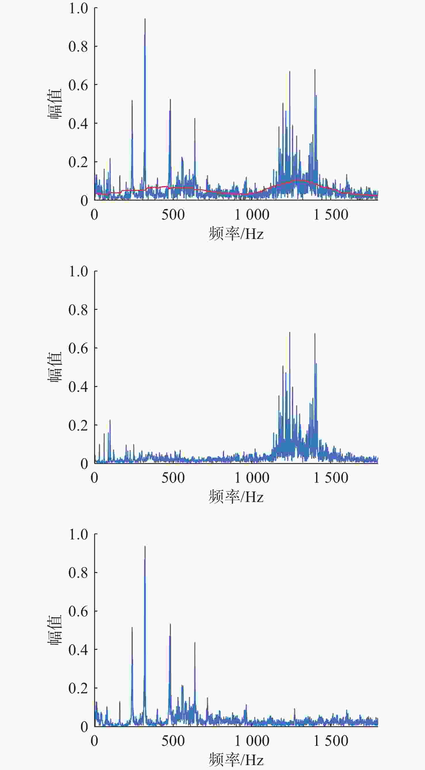(a)α= 1450 信号类别 K=5 K=6 K=7 K=8 K=9 目标一 0.8805 0.8896 0.8898 0.8858 0.8659 目标二 0.8854 0.8850 0.8863 0.8867 0.7982 (b)α= 1500 信号类别 K=5 K=6 K=7 K=8 K=9 目标一 0.8800 0.8896 0.8900 0.8860 0.8658 目标二 0.8849 0.8846 0.8859 0.8863 0.7978 (c)α= 1550 信号类别 K=5 K=6 K=7 K=8 K=9 目标一 0.8805 0.8896 0.8898 0.8858 0.8659 目标二 0.8854 0.8850 0.8863 0.8867 0.7982 表 7 VMD-FastICA分离后信号与原信号相关系数绝对值(试验二)