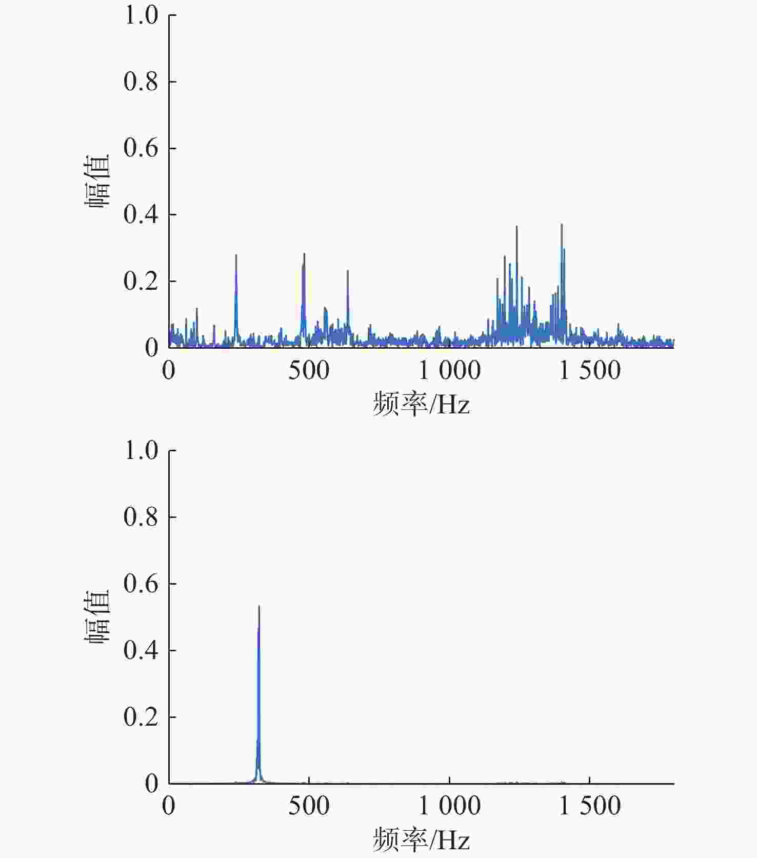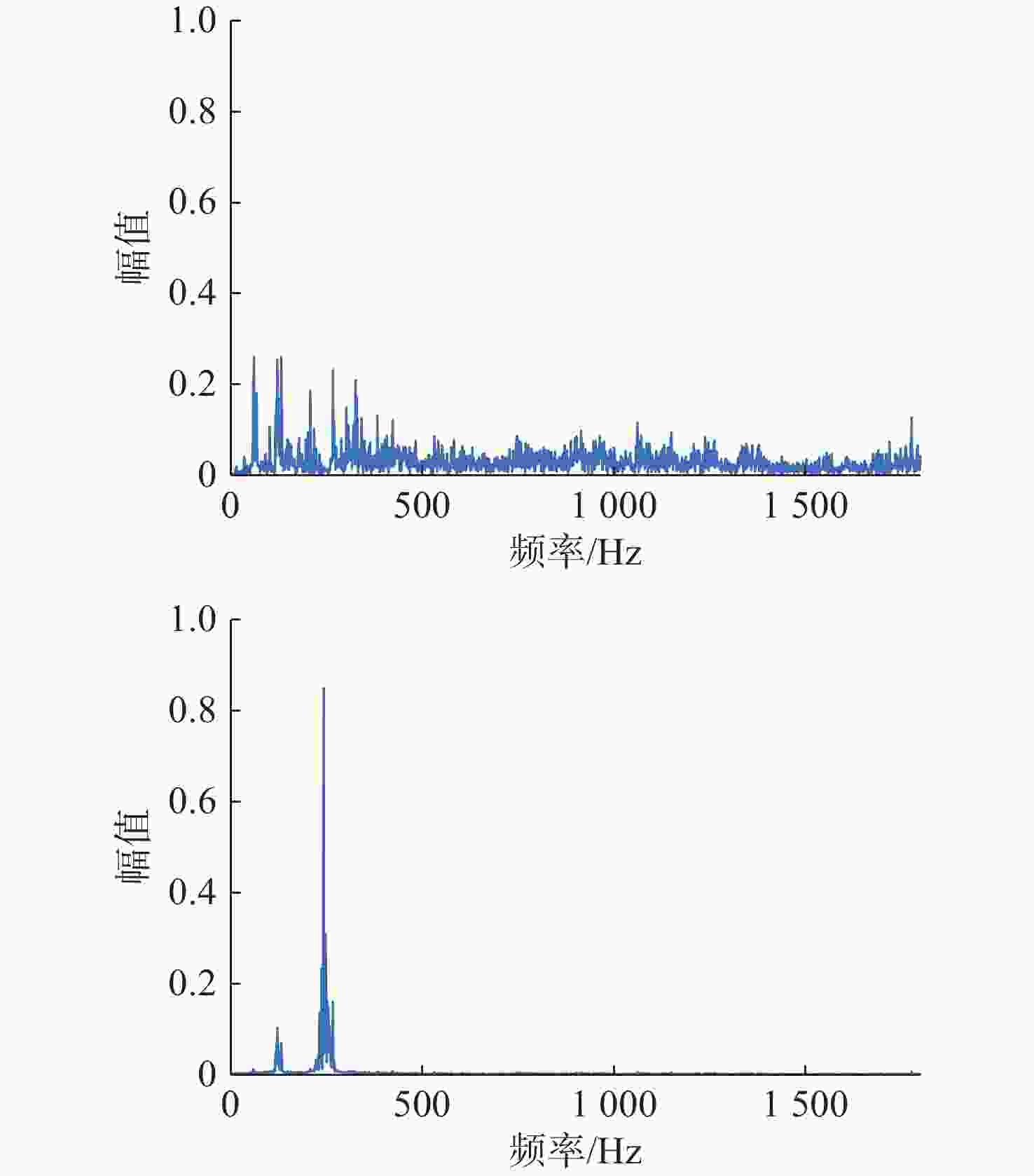 处理方法 目标一信号 目标二信号 混合信号 0.7852 0.7263 SSA-ICA 0.8416 0.3881 VMD-FastICA 0.9607 0.9488 表 2 混合信号、分离后目标信号与原目标信号相关系数绝对值