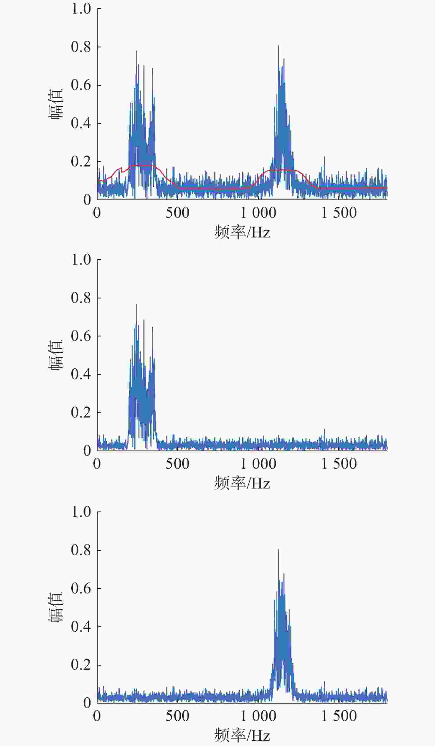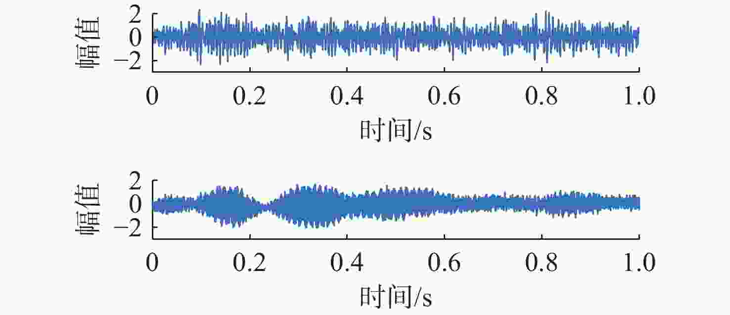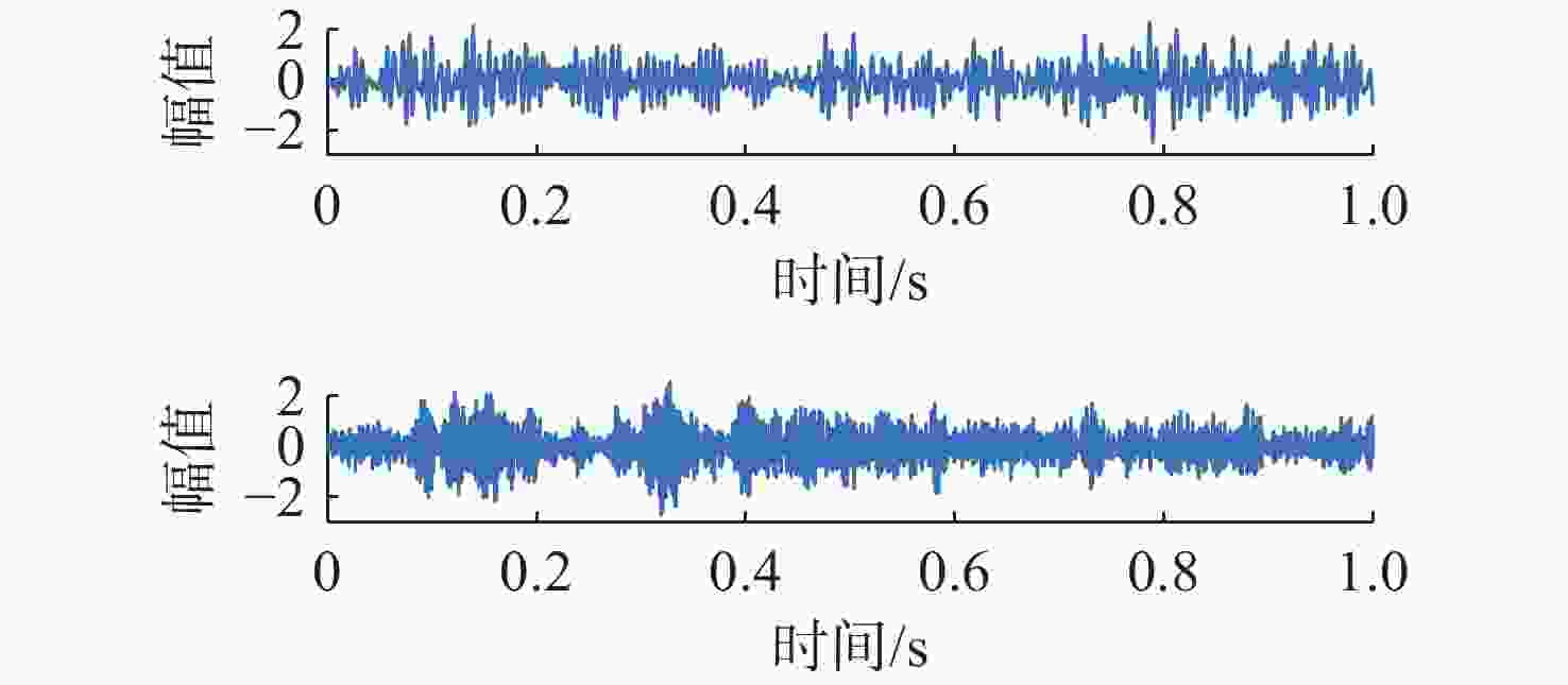 摘要: 针对在仅有单通道信号可用的极端条件下, 难以从混合信号中分离出不同目标舰船辐射噪声信号问题, 开展单通道盲源分离算法研究。提出一种基于变分模态分解(VMD)改进快速独立成分分析(FastICA)的舰船辐射噪声盲源分离算法。在单通道条件下, 首先通过VMD将单通道信号分解为频率成分相对独立的多阶模态, 初步实现独立频率成分的分离; 而后将各阶模态组合为虚拟多通道信号, 解决FastICA无法处理单通道信号的问题; 最后通过FastICA对虚拟多通道信号进行处理, 进一步分离独立信号成分, 从而实现单通道舰船辐射噪声盲源分离。仿真与试验数据分析结果显示, VMD-FastICA算法分离的目标信号与原目标信号的相似度, 较奇异谱分析-独立成分分析(SSA-ICA)算法均有提升, 表明其在单通道舰船辐射噪声信号盲源分离中效果良好, 可能够实现单通道条件下不同目标舰船辐射噪声信号的有效分离。Abstract: Addressing the challenge of separating different target ship radiated noise signal from mixed signal under extreme conditions where only single-channel signal is available, blind source separation algorithm under single-channel condition is researched. A ship radiated noise blind source separation algorithm based on the improved Fast Independent Component Analysis (Fast-ICA) using Variational Mode Decomposition (VMD) is proposed. Under single-channel condition, the single-channel signal is first decomposed into multiple relatively independent frequency components through VMD, initially achieving the separation of independent frequency0 components. Then, these modes are combined into virtual multi-channel signals to solve the issue that Fast-ICA cannot process single-channel signal. Finally, the combined virtual multi-channel signals are processed using Fast-ICA to further separate independent signal components, thereby achieving single-channel ship radiated noise blind source separation. Simulation and experimental data analysis results show that, both under the influence of environmental noise and without environmental noise, the similarity between the target signals separated by the proposed VMD-FastICA blind source separation algorithm and the original target signals is improved compared to the SSA-ICA algorithm. This demonstrates that VMD-FastICA blind source separation algorithm has good performance for single-channel ship radiated noise signal and can achieve blind source separation of different target ship radiated noise signals under single-channel condition.