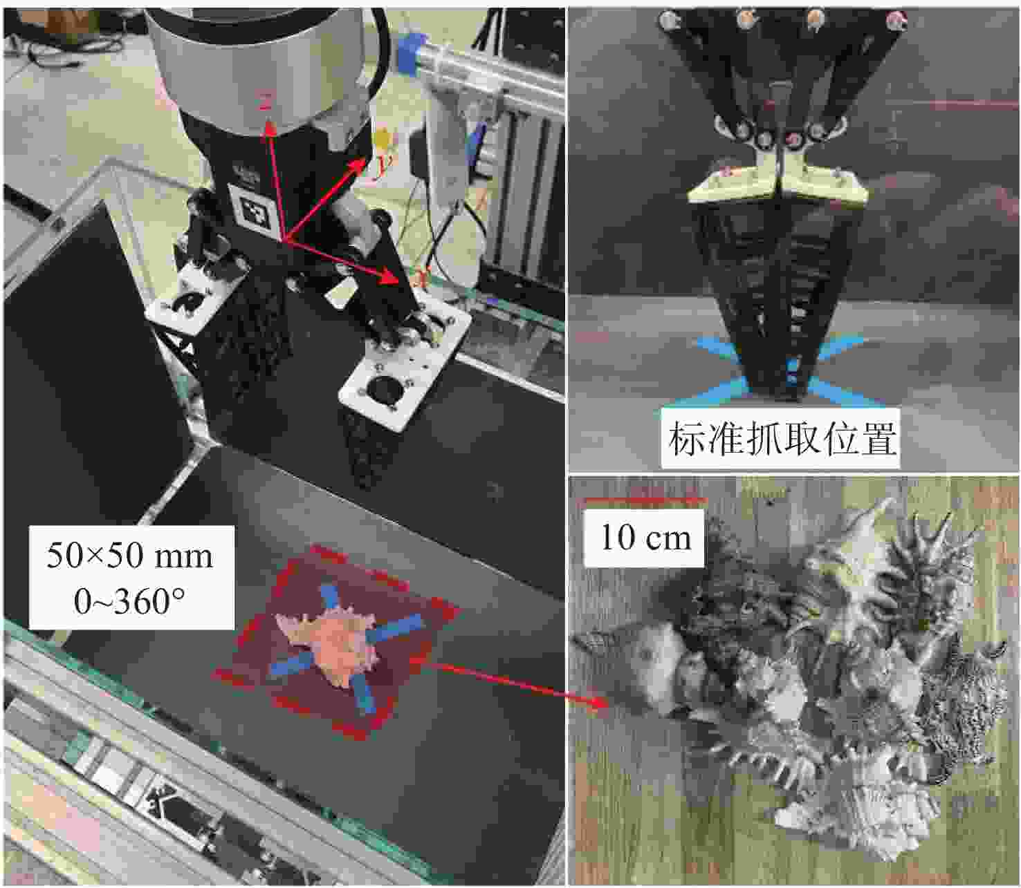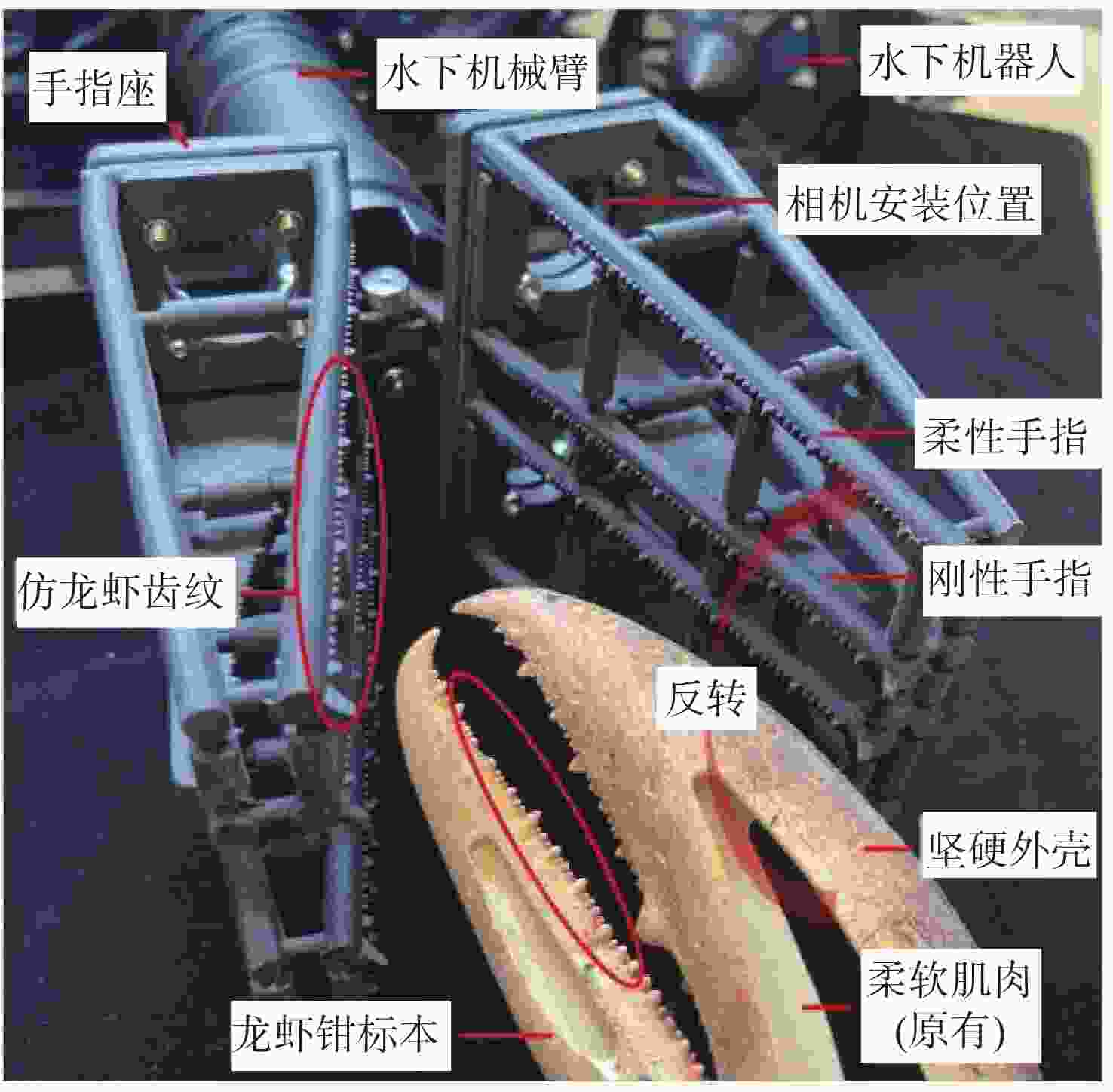 摘要: 水下无人装备是国家海洋科技实力的重要象征, 广泛应用于资源勘探、科研及国防安全等领域。其末端执行器——水下夹爪的性能, 直接决定任务执行效能。当前商业夹爪难以同时满足强负载与高适应性需求, 难以兼顾"无损抓取"与"强力持握"的双重要求。文中提出一种新型仿生刚柔耦合夹爪设计"LobSTER Gripper", 灵感源自龙虾钳部生物结构。该夹爪采用"柔性指外覆刚性指"的仿生反转结构: 通过具有被动全向适应性的软体手指实现初始"柔触"包络, 再由内部刚性手指提供可靠"刚夹"持握, 无需复杂驱动控制即可分阶段完成刚度切换。实验验证显示, 该夹爪在位姿扰动场景下抓取成功率达100%, 显著优于传统刚性夹爪的80%。这一设计为水下自适应抓持提供了低成本、高可靠性的易迁移解决方案, 具备显著的工程应用价值与推广前景。Abstract: Underwater unmanned systems, vital to national marine technology, are extensively used in resource exploration, research, and defense. The performance of their end-effectors-underwater grippers is crucial to mission success. Existing grippers often fail to combine high load capacity with adaptability, or to balance “non-destructive grasping” with “firm holding”. Inspired by lobster claws, this study proposes a novel bio-inspired hybrid rigid-soft gripper, the “LobSTER Gripper”. It uses a bionic reversed structure: soft fingers with passive compliance provide gentle initial contact, while internal rigid digits ensure secure holding, enabling phased stiffness adaptation without complex control. Tests show a 100% success rate under pose disturbances, significantly outperforming conventional rigid grippers (80%). The design offers a low-cost, reliable, and easily transferable solution for adaptive underwater grasping with broad application potential.