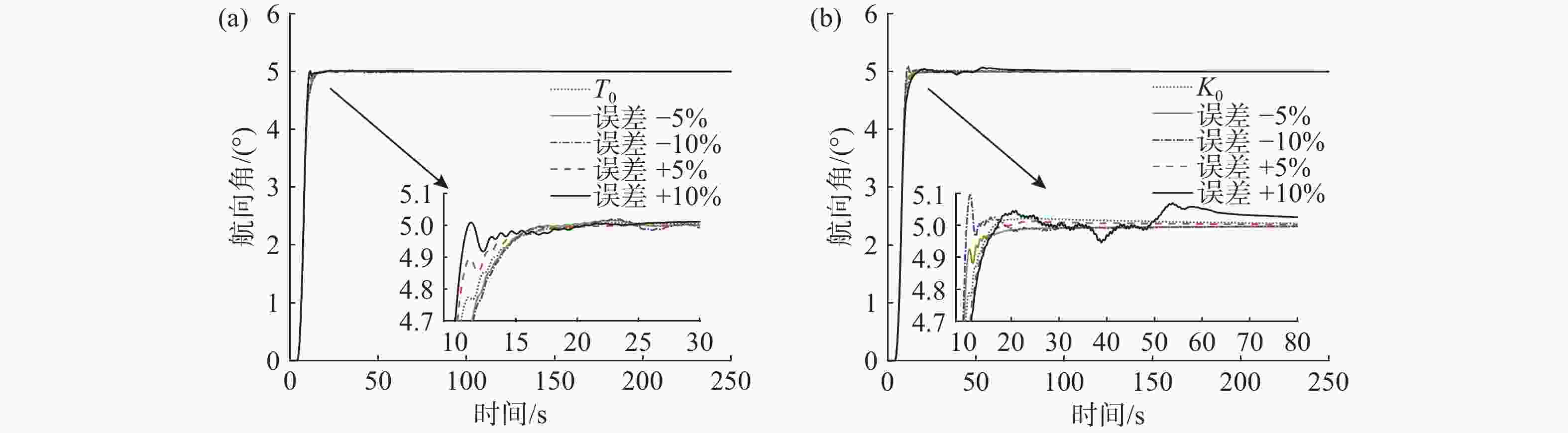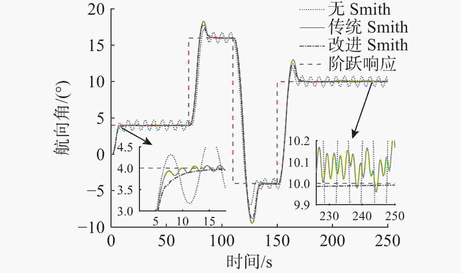 图  11  不同阶跃输入下的改进Smith控制对航向角控制效果的对比验证