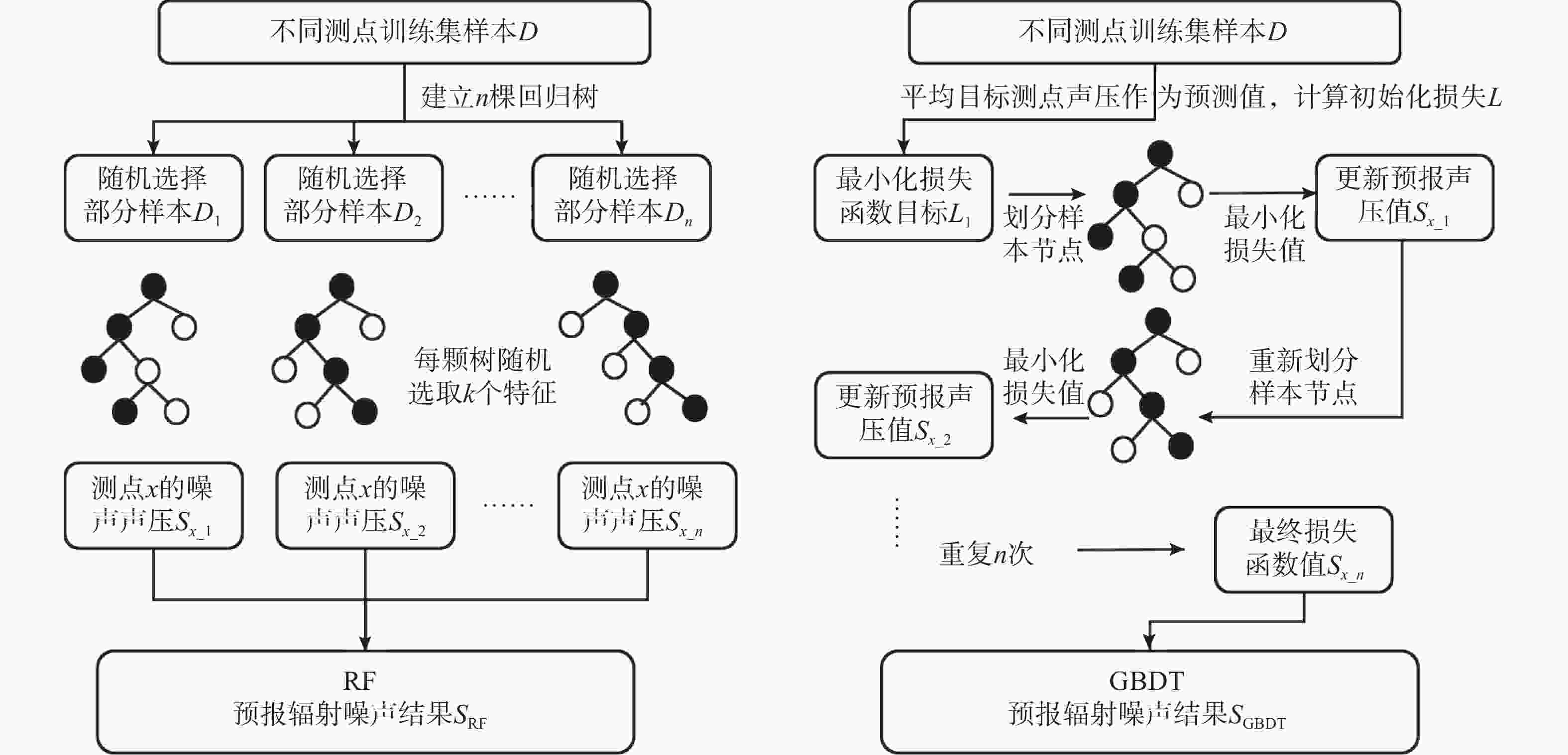 MAE/dB RMSE /dB 工况1 工况2 工况3 工况4 工况1 工况2 工况3 工况4 RF 3.2 3.0 1.2 4.8 3.2 3.1 1.2 4.9 GBDT 2.9 2.9 1.1 4.3 2.9 3.0 1.1 4.4 贝叶斯岭回归 4.3 3.2 1.7 3.8 4.4 3.4 1.8 3.9 -