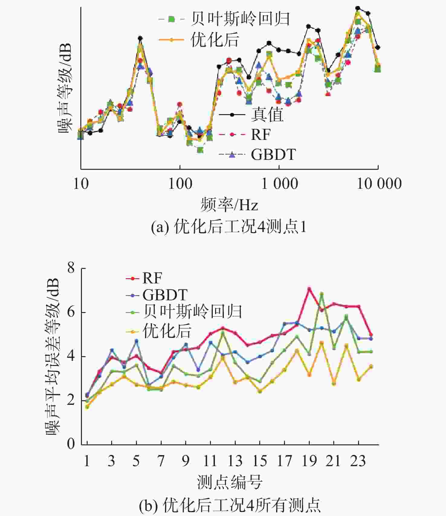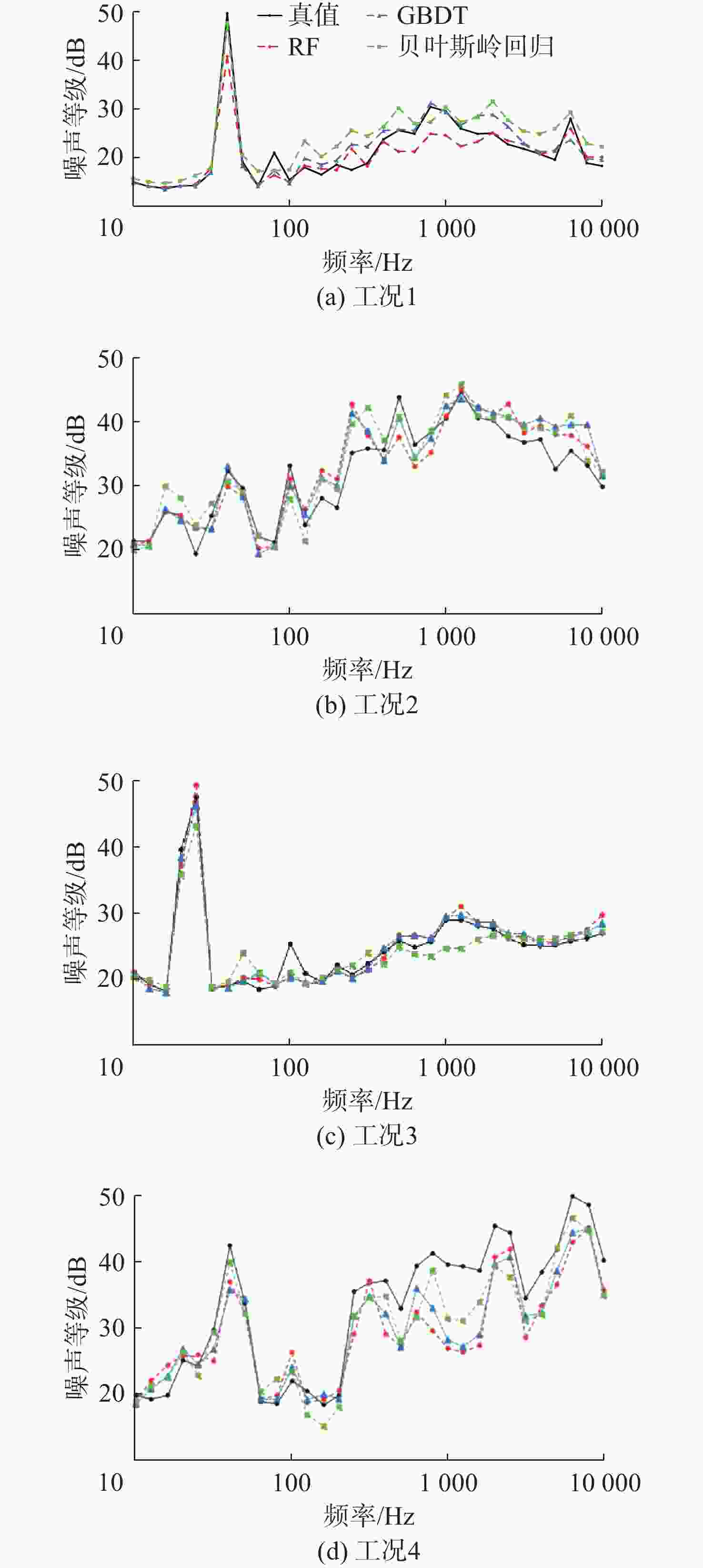 频域/ Hz RF GBDT 贝叶斯岭回归 10 ~100 2.49 2.21 2.56 100 ~ 1 000 2.83 2.53 2.76 1 000~10 000 2.12 2.31 3.33 表 3 不同工况下模型预报误差对比