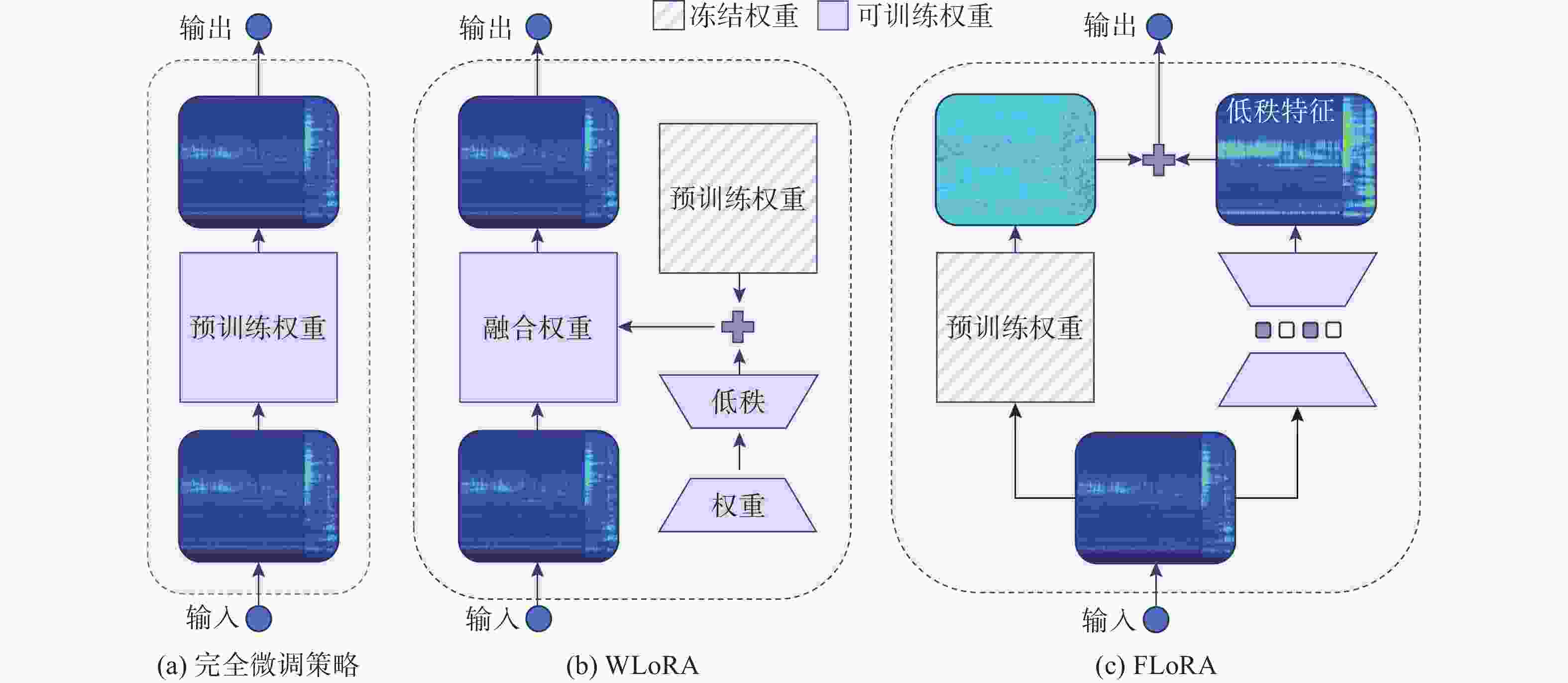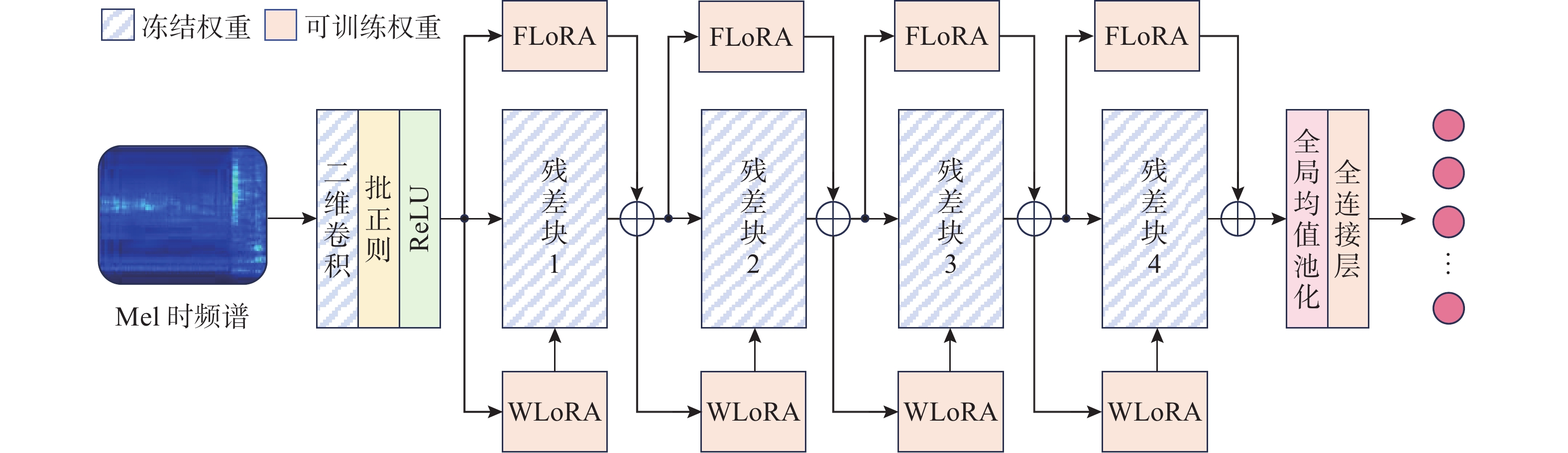 摘要: 针对深度学习模型在船舶辐射噪声识别中由数据短缺、域偏移导致的泛化能力受限问题, 文中提出了一种权重-特征双低秩自适应迁移学习框架。该框架从模型权重和特征表达2个维度协同开展低秩优化: 在权重空间, 冻结预训练权重, 通过轻量化低秩权重调整(WLoRA)模块构建可学习低秩权重参数, 以较少参数量完成权重微调, 从而降低过拟合风险; 在特征空间, 基于船舶辐射噪声Mel时频谱的内在低秩结构, 通过低秩特征调整(FLoRA)模块对特征进行压缩和重构, 从而显式约束模型学习低秩特征。该框架充分考虑了Mel时频谱的固有低秩结构, 深入挖掘预训练模型潜力, 有效提升了迁移学习性能。通过在ShipsEar和Deepship公开数据集上的实验表明, 相对于直接微调预训练模型, 所提方法能够有效提升迁移学习在船舶辐射嗓声分类模型中的性能。进一步的消融实验验证了2个低秩模块的有效性。Abstract: To address the limited generalization capability of deep learning models in ship-radiated noise recognition caused by data shortage and domain shift, this paper proposed a dual low-rank adaptation transfer learning framework of weights and features. This framework conducted low-rank optimization simultaneously from two dimensions: model weights and feature representations. In the weight space, the pretrained weights were frozen, and a lightweight weight low-rank adaptation (WLoRA) module was introduced to construct learnable low-rank weight parameters, completing the weight fine-tuning with fewer parameters and thereby reducing the risk of overfitting. In the feature space, based on the inherent low-rank structure of the Mel spectrogram of ship-radiated noise, the feature was compressed and reconstructed through the low-rank feature adjustment (FLoRA) module, thereby explicitly constraining the model to learn low-rank features. This framework fully took into account the inherent low-rank structure of the Mel spectrogram, deeply explored the potential of pretrained models, and effectively improved the performance of transfer learning. Experimental results on the public datasets ShipsEar and Deepship show that compared with directly fine-tuning the pretrained model, the proposed method can effectively enhance the performance of transfer learning in the classification model of ship-radiated noise. Further ablation experiments have verified the effectiveness of the two low-rank modules.