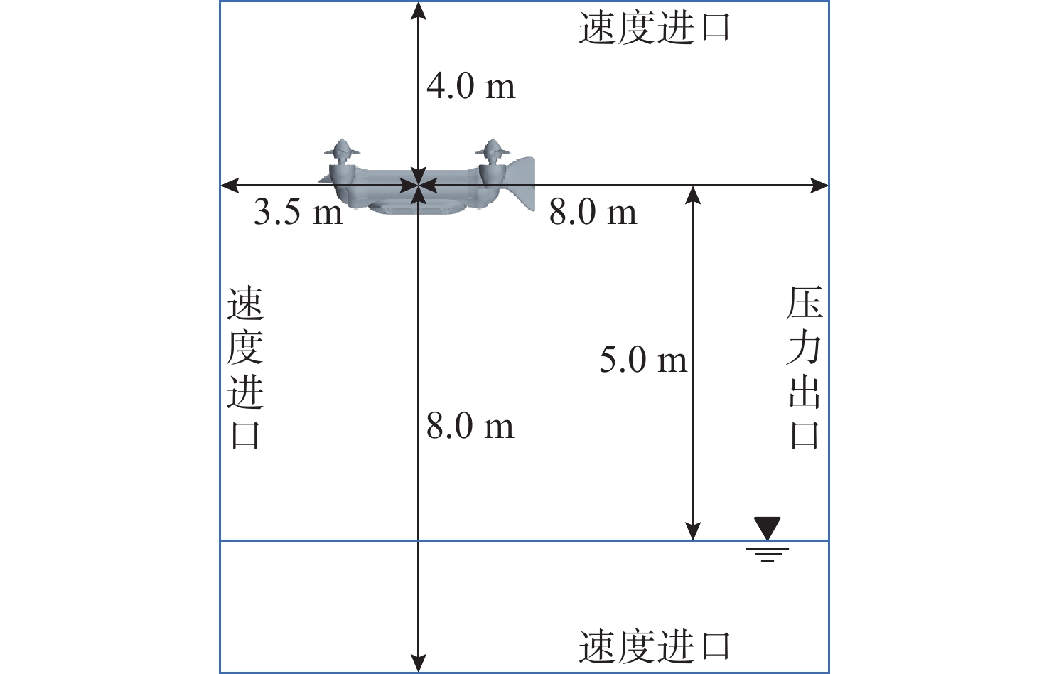 摘要: 为应对复杂海洋环境中跨介质作业的需求, 针对一款具备空中与水下双模态运动能力的跨介质机器人, 开展了推进系统的计算流体力学(CFD)仿真研究。由于空气与水的密度、黏性等物理性质存在显著差异, 传统单环境推进器难以兼顾2种介质的高效推进。为此, 文中建立了涵盖空中与水下2种典型工况的三维瞬态CFD模型, 采用滑移网格与流体体积方法, 对单螺旋桨与多推进器耦合系统进行对比仿真分析, 揭示了跨介质推进系统在推力系数、推进效率与尾流干扰等方面的差异性及规律。结果表明, 在3 kn航速下, 水下推进系统效率最高可达48.48%, 显著高于空中推进系统(7.43%); 多推进器协同运行会引起尾流耦合干扰, 但在合理布局下可提升整体效率。文中构建了统一的空-水推进CFD分析框架, 提出了一种跨介质推进性能定量评估方法, 为跨介质机器人推进系统的布局优化与多模态协同设计提供理论参考。Abstract: To meet the demand for cross-medium operations in complex marine environments, this paper conducted a computational fluid dynamics(CFD) simulation study on the propulsion system of a cross-medium robot with air-water dual-mode motion capability. Due to the significant differences in physical properties such as density and viscosity between air and water, traditional single-environment propellers fail to balance high propulsion efficiency in both media. To address this, this paper established a three-dimensional transient CFD model covering typical aerial and underwater conditions. The sliding mesh and volume of fluid methods were adopted to perform a comparative simulation analysis of single-propeller and multi-propeller coupled systems, revealing the differences and patterns of the cross-medium propulsion system in terms of thrust coefficient, propulsion efficiency, and wake interference. The results indicate that at a speed of 3 kn, the underwater propulsion system achieves an efficiency of up to 48.48%, significantly higher than that of the aerial propulsion system(7.43%). Although multi-propeller operation induces wake coupling interference, an optimized layout can improve the overall efficiency. This paper constructed a unified CFD analysis framework for air-water propulsion and proposed a quantitative evaluation method for cross-medium propulsion performance, providing theoretical support for the layout optimization and multimodal coordination design of cross-medium robots.