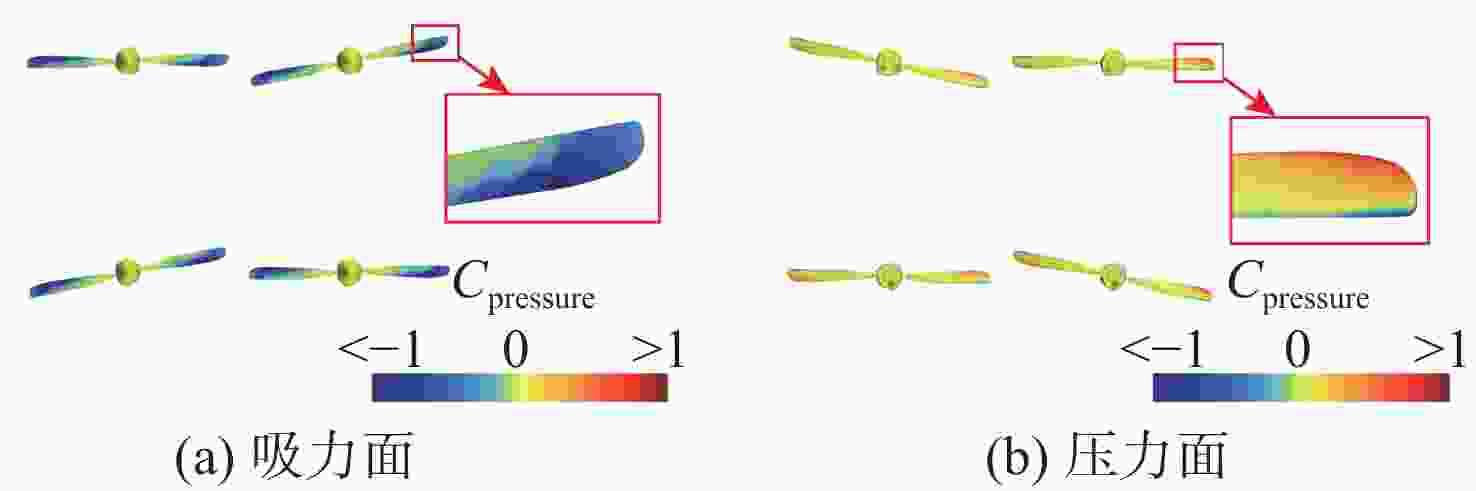 变量 数值 航速/kn 3 驱动转速/(r/min) 1 500 推力系数 0.079 8 转矩系数 0.011 8 功率系数 0.073 8 推进效率 0.072 9 表 4 空中螺旋桨3套网格尺寸和数量(多组)