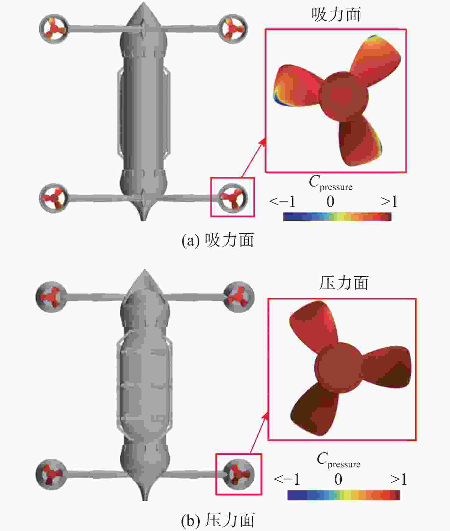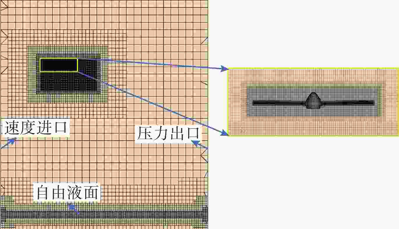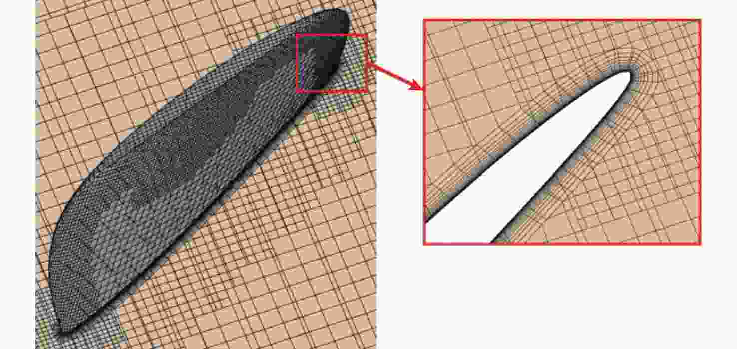 变量 数值 航速/kn 3 转速/(r/min) 1 500 升力/N 173.87 阻力/N 5.98 表 8 水下螺旋桨3套网格尺寸和数量(单组)