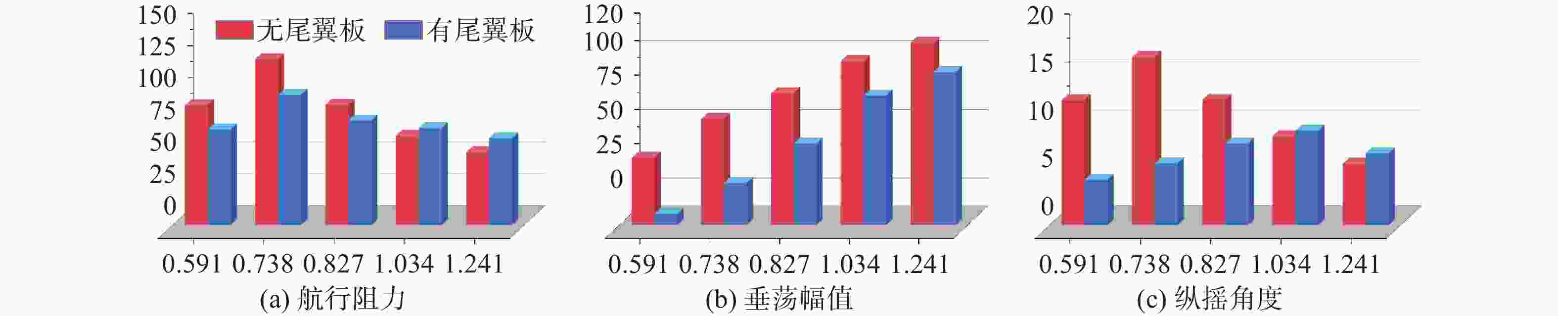 摘要: 为探究尾翼板对水陆两栖车水动力性能的影响机制, 结合静水拖曳试验与数值仿真方法, 基于STAR-CCM+数值计算对比分析了加装尾翼板前后两栖车辆在不同航速下的运动参数、自由液面波形及车身压力分布特性。结果表明: 尾翼板显著改变水陆两栖车水动力特性。运动参数上, 其引入使航行阻力呈先降后增趋势, 在弗劳德数Fr=0.738时减阻率达21.6%; 航行姿态调控作用突出, 纵摇角度峰值差异达63.3% (Fr=0.738), 且有效抑制计算航速域内垂荡运动。尾翼板通过改变车体纵摇角度和垂荡幅值, 显著重构两栖车周围流场波形和车身压力分布特征, 其效果具有速度依赖性。Abstract: To explore the effect mechanism of stern flap on the hydrodynamic performance of amphibious vehicles, a combination of towing tests and numerical simulation methods was adopted to comparatively analyze the motion parameters, waveforms and pressure distribution of the vehicle at different speeds before and after the installation of stern flap base on STAR-CCM+. The results show that stern flap significantly alters the hydrodynamic characteristics of the vehicle. In terms of motion parameters, its introduction leads to a trend of first decreasing and then increasing in resistance, with a resistance reduction rate of 21.6% at Fr = 0.738. The regulation effect on sailing attitude is prominent, with a peak difference in pitch angle reaching 63.3% (Fr = 0.738), and it effectively suppresses the heave within the speed range. The stern flap significantly reconstructs the waveform of flow field around the amphibious vehicle and the pressure distribution characteristics of vehicle by changing the pitch angle and heave amplitude, and its effect is speed-dependent.