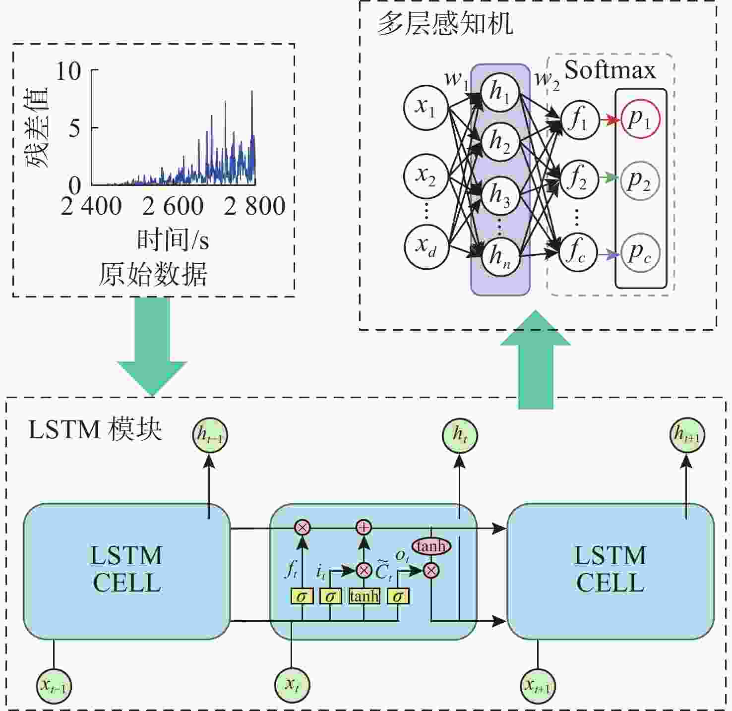 故障类型 精确率 召回率 F1分数 系统正常 0.976 6 0.967 2 0.971 9 突变故障 0.956 3 0.985 0 0.970 4 线性故障 0.858 9 0.843 2 0.851 0 二次方故障 0.902 8 0.910 7 0.906 7 周期性故障 0.987 4 0.993 7 0.990 5 对数型故障 0.916 1 0.902 5 0.909 3 算数平均 0.933 0 0.933 7 0.933 3 加权平均 0.933 4 0.933 7 0.933 5 表 3 算法结果对比
