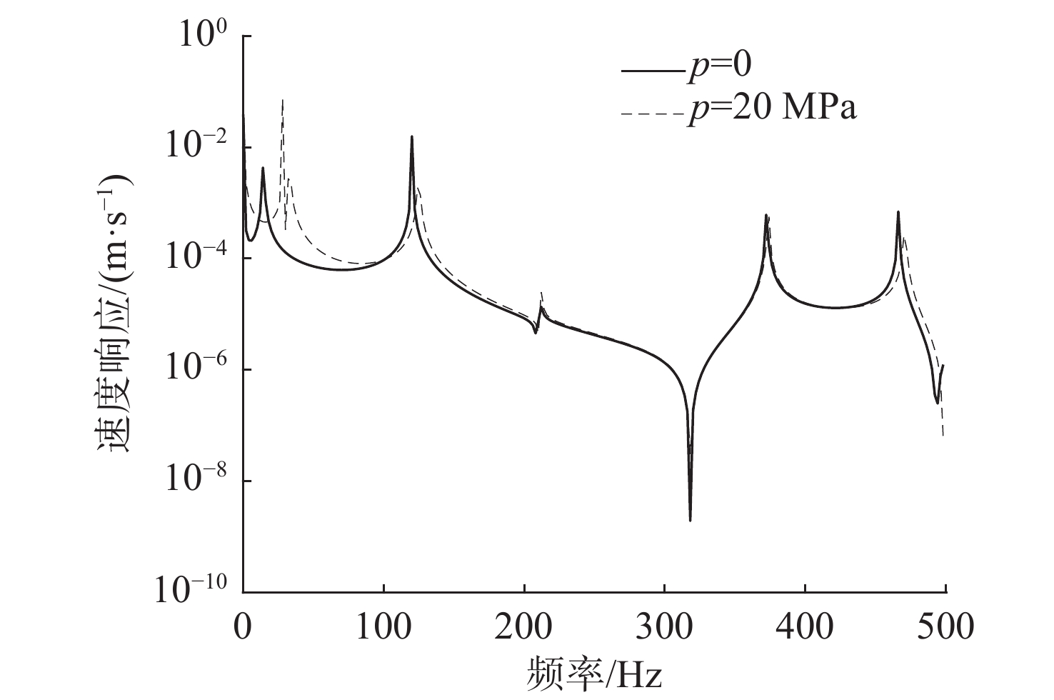 图  11  L型管道末端x方向振动速度响应