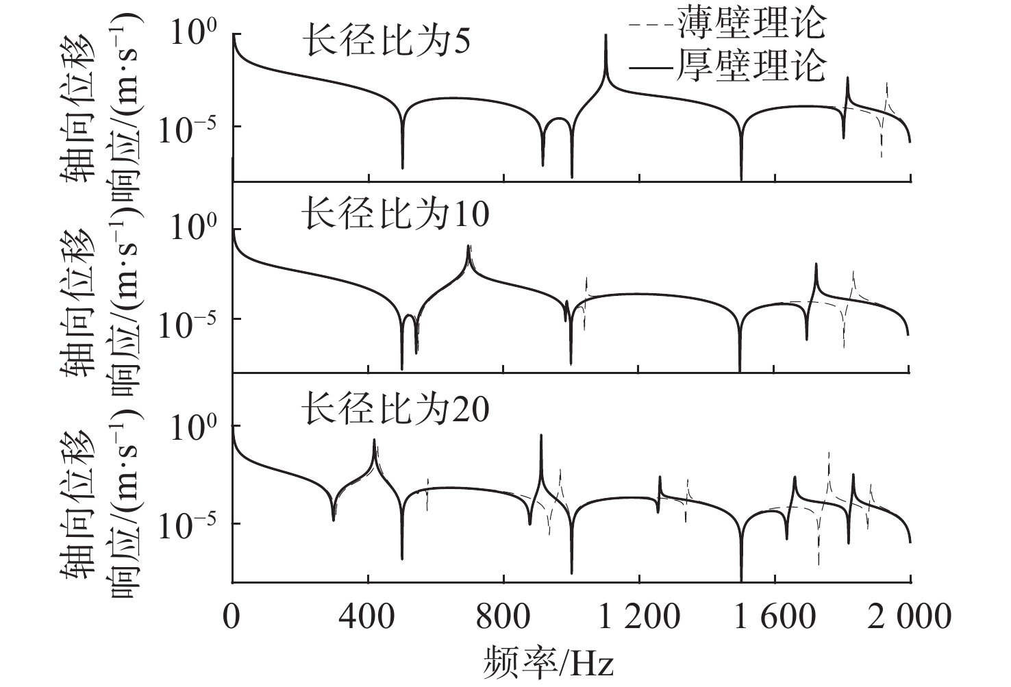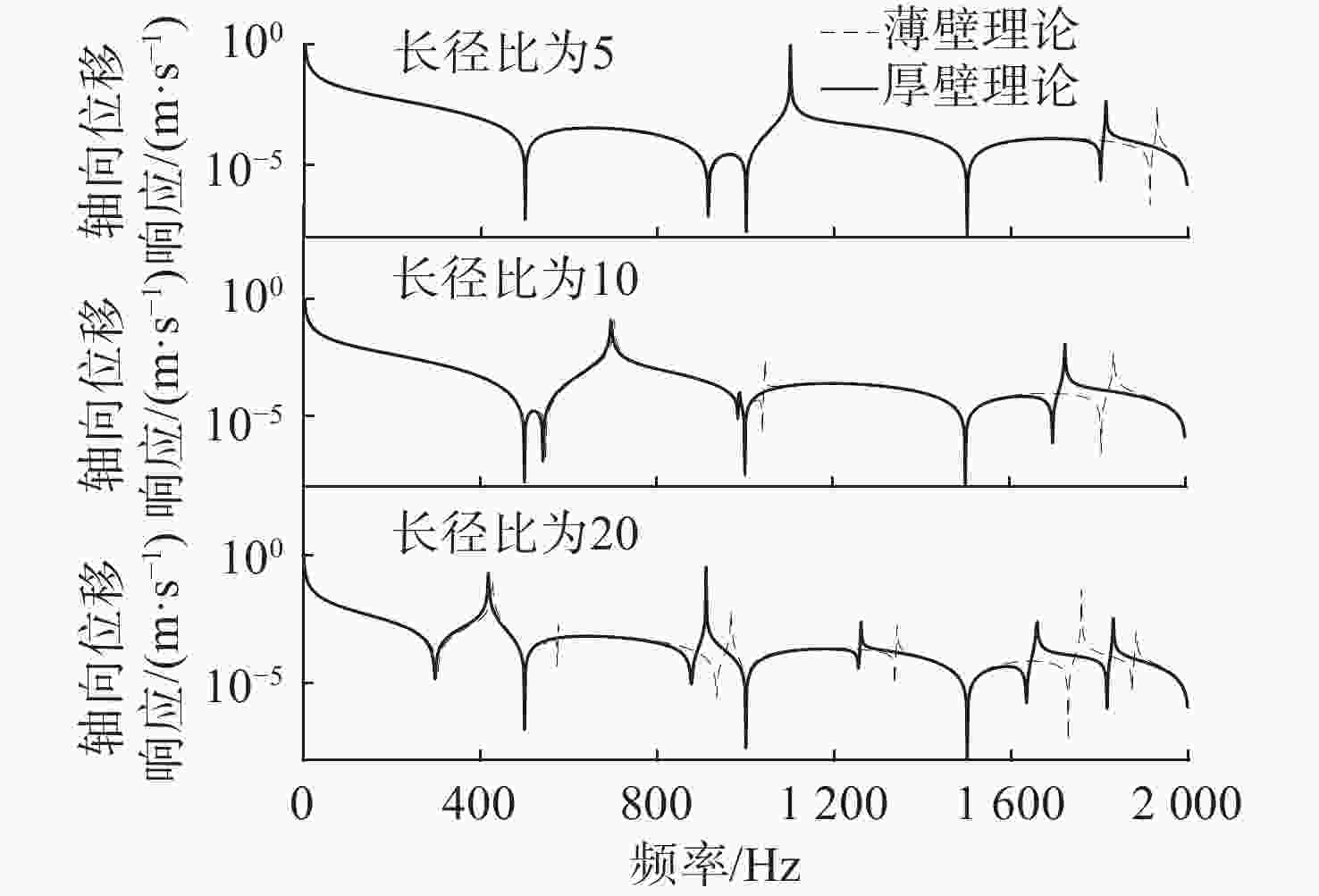 图  7  不同长径比下橡胶管道2种理论轴向位移响应对比