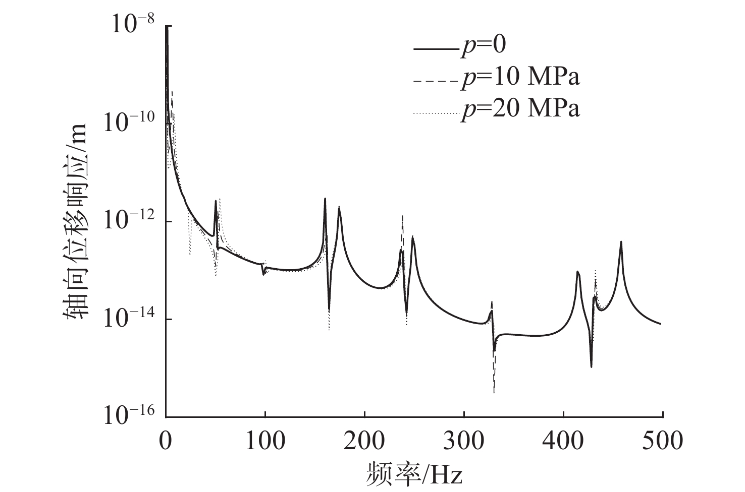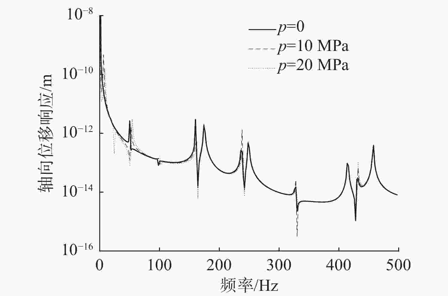 Figure  9.  Axial displacement responses of the pipe unde different hydrostatic pressure
