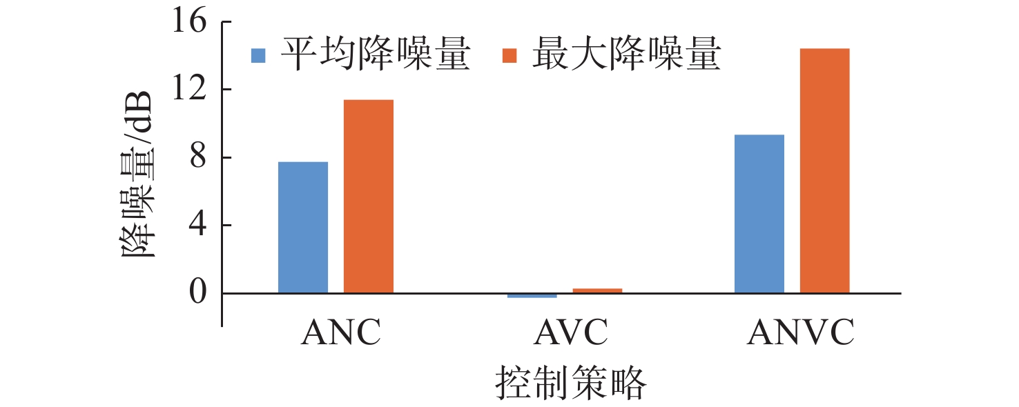 dB 名称 H1 H2 H3 H4 H5 H6 H7 H8 ANC 11.4 7.2 7.4 5.7 4.7 7.4 9.0 9.7 AVC −0.4 −0.8 −0.3 −0.4 −0.3 −0.1 0.3 −0.1 ANVC 12.6 5.2 5.6 12.1 9.3 10.8 5.5 14.4 表 3 低转速工况下不同控制策略下降噪量