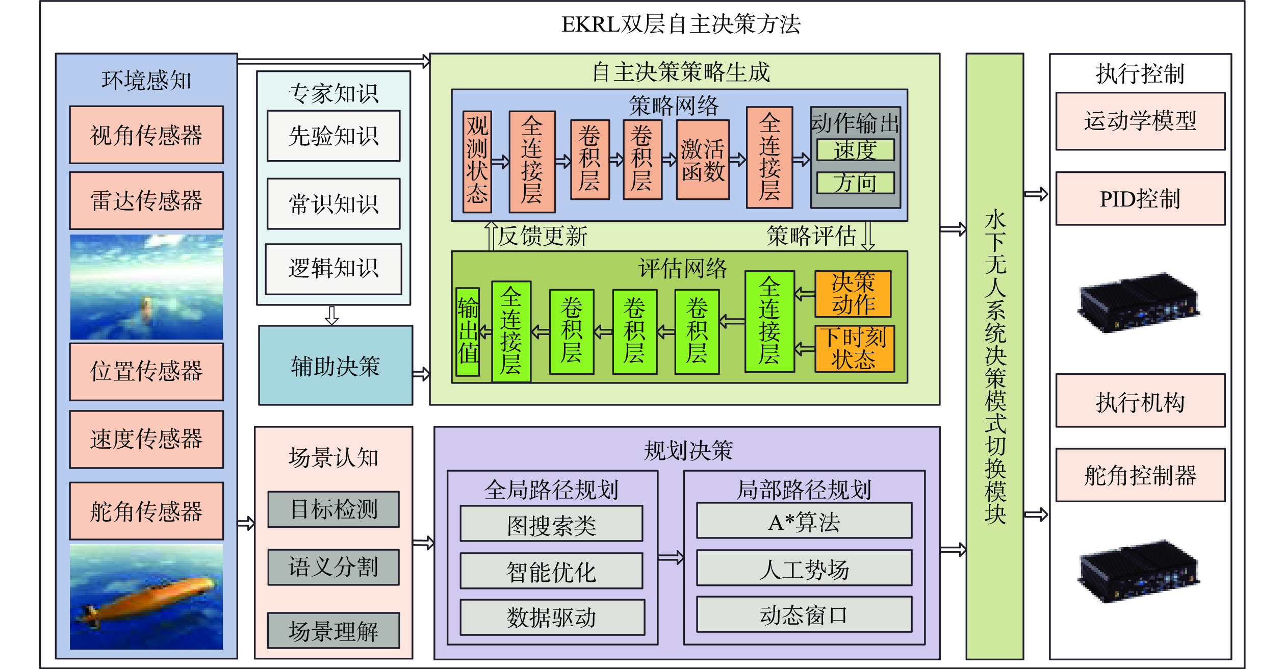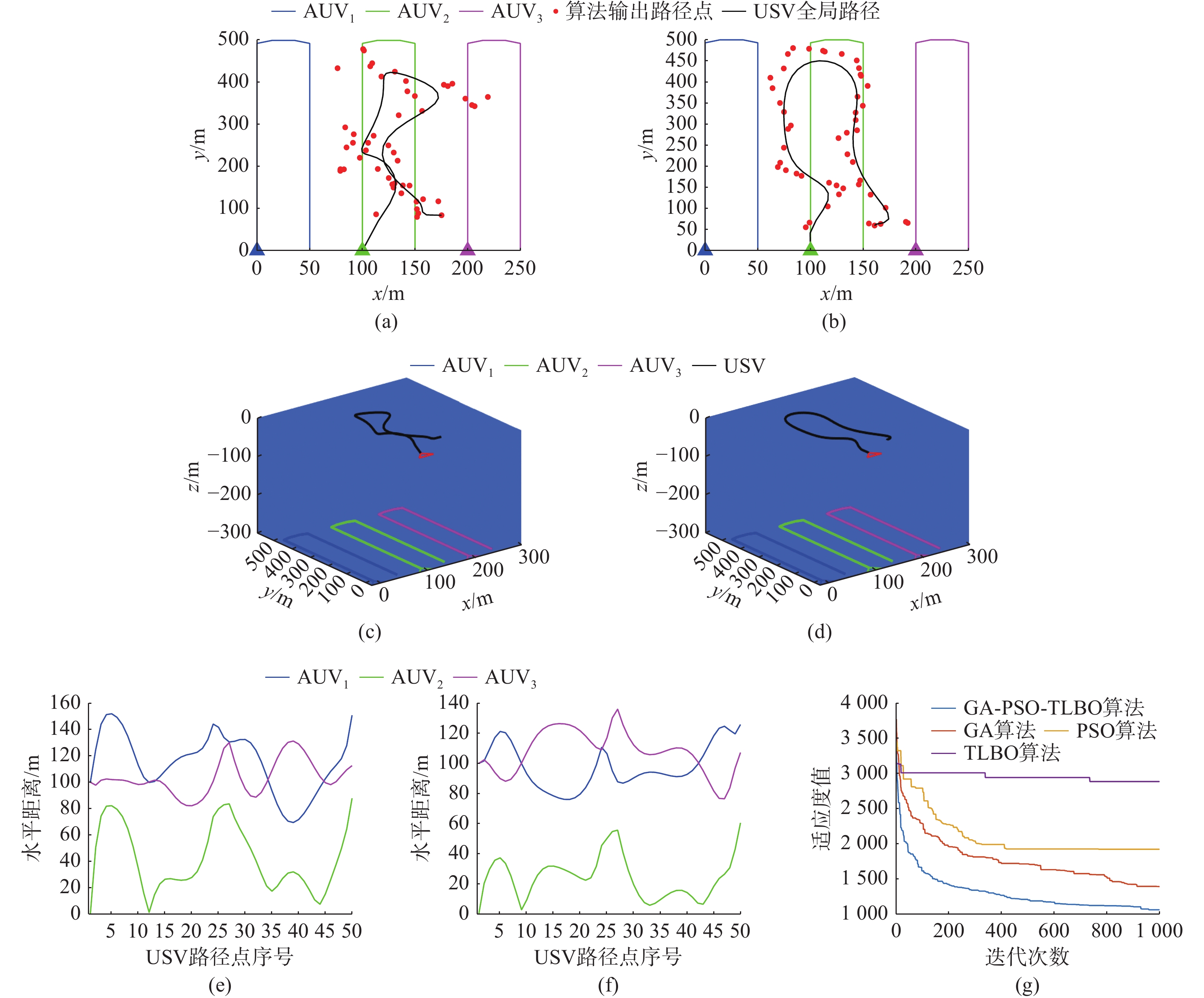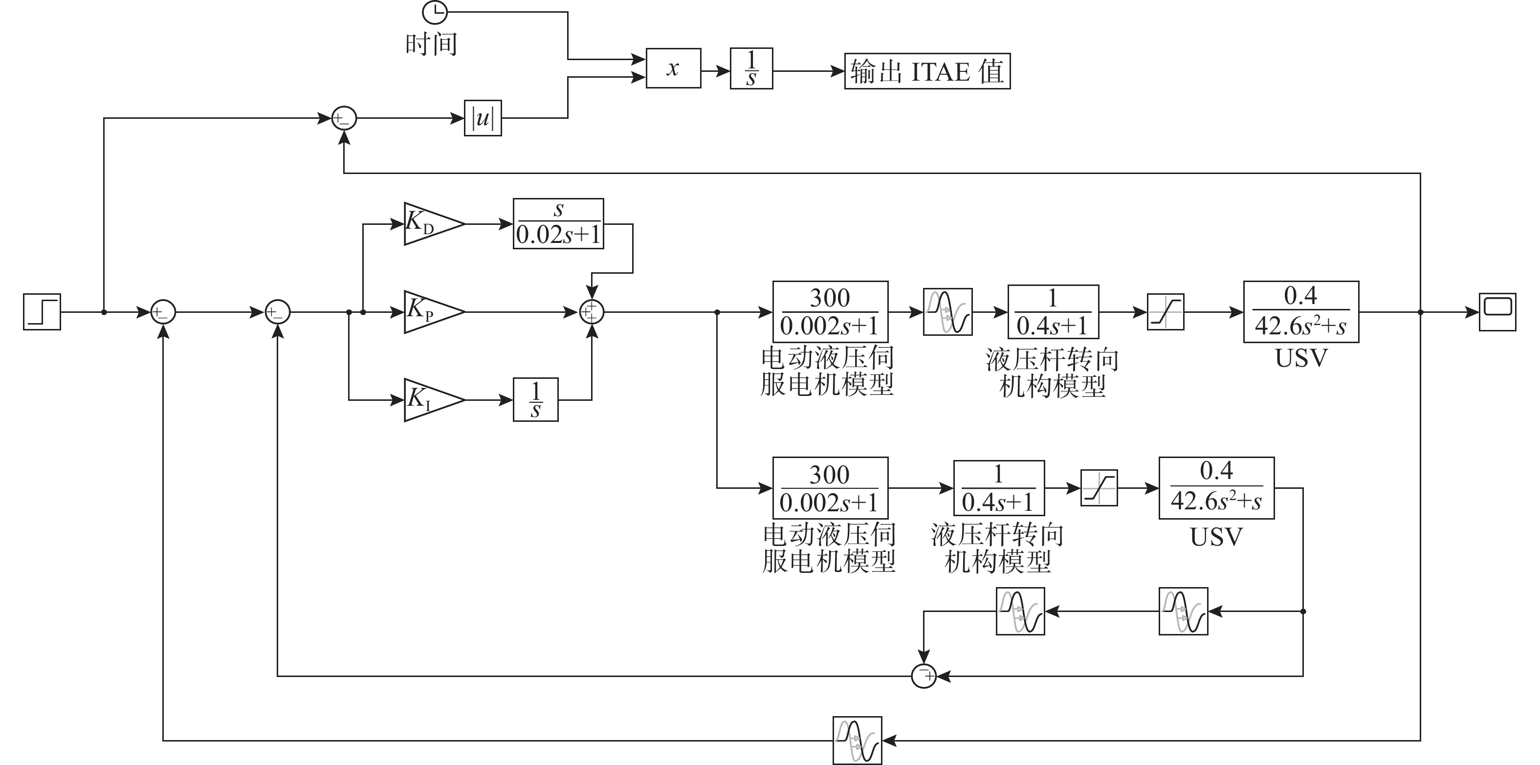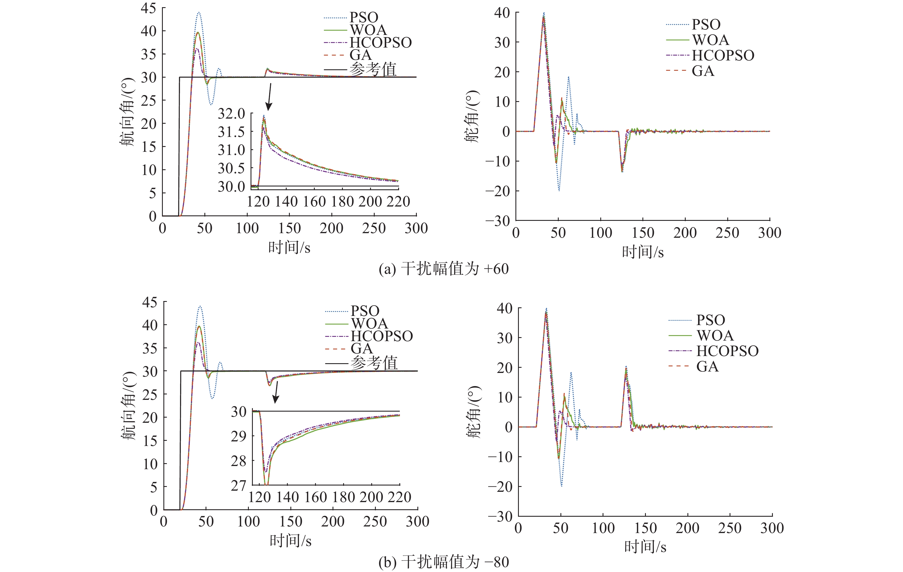 In the heading control of a high-speed unmanned surface vessel(USV), there are time delay elements in both the forward channel and the feedback loop. Moreover, it has a large delay/dynamic time ratio, significantly reducing the performance of heading control. Conventional Smith predictors can only effectively compensate for time delays in the forward channel and are ineffective against time delays in the feedback loop. In this paper, the time delay in the feedback loop was incorporated into the design of the Smith predictor, constructing a predictive model that incorporated time delays in both directions. This approach allowed for simultaneous compensation of time delays in both the forward channel and feedback loop, thereby significantly reducing the erosion of the system’s phase margin caused by bidirectional time delays. Furthermore, a hybrid mean center opposition-based learning particle swarm optimization(HCOPSO) algorithm was introduced for the parameter tuning of the proportional-integral-derivative(PID) controller. This algorithm employed a mean center opposition-based reverse learning strategy in the early stages of iteration to expand the search range and utilized an adaptive compression factor in the later stages for fine-tuning. Therefore, it combined the advantages of both global exploration and local exploitation, effectively solving the problem of local optimal solutions in the optimization process. Simulation tests were conducted based on the USV heading model. The results demonstrate that the improved Smith predictor-based PID controller shows significant improvements in system overshoot and settling time compared to conventional PID controllers and traditional Smith predictor-based PID controllers, with a steady-state error of less than 0.1°. When the compensation model of the improved Smith predictor contains parameter deviations, the system can still maintain good dynamic stability and steady-state accuracy. Meanwhile, for the Smith predictor-based PID controller, the navigation control performance of the HCOPSO algorithm was further compared and analyzed with that of the particle swarm optimization(PSO) algorithm, genetic algorithm(GA), and whale optimization algorithm(WOA). The results show that the integral of time-weighted absolute error(ITAE) index obtained by the HCOPSO algorithm is 55.38%, 22.47%, and 24.63% lower than that of the PSO algorithm, GA, and WOA, and it demonstrates strong disturbance suppression ability and heading stability ability, verifying its effectiveness.